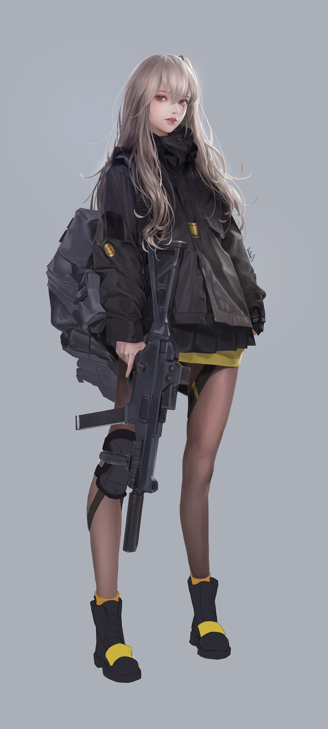 长发 双肩包 动漫女孩 黑色丝袜 全面屏手机壁纸