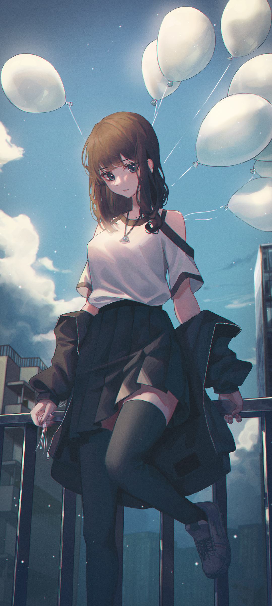 可爱好看长发动漫女孩白色裙子美腿手机桌面免费壁纸下载