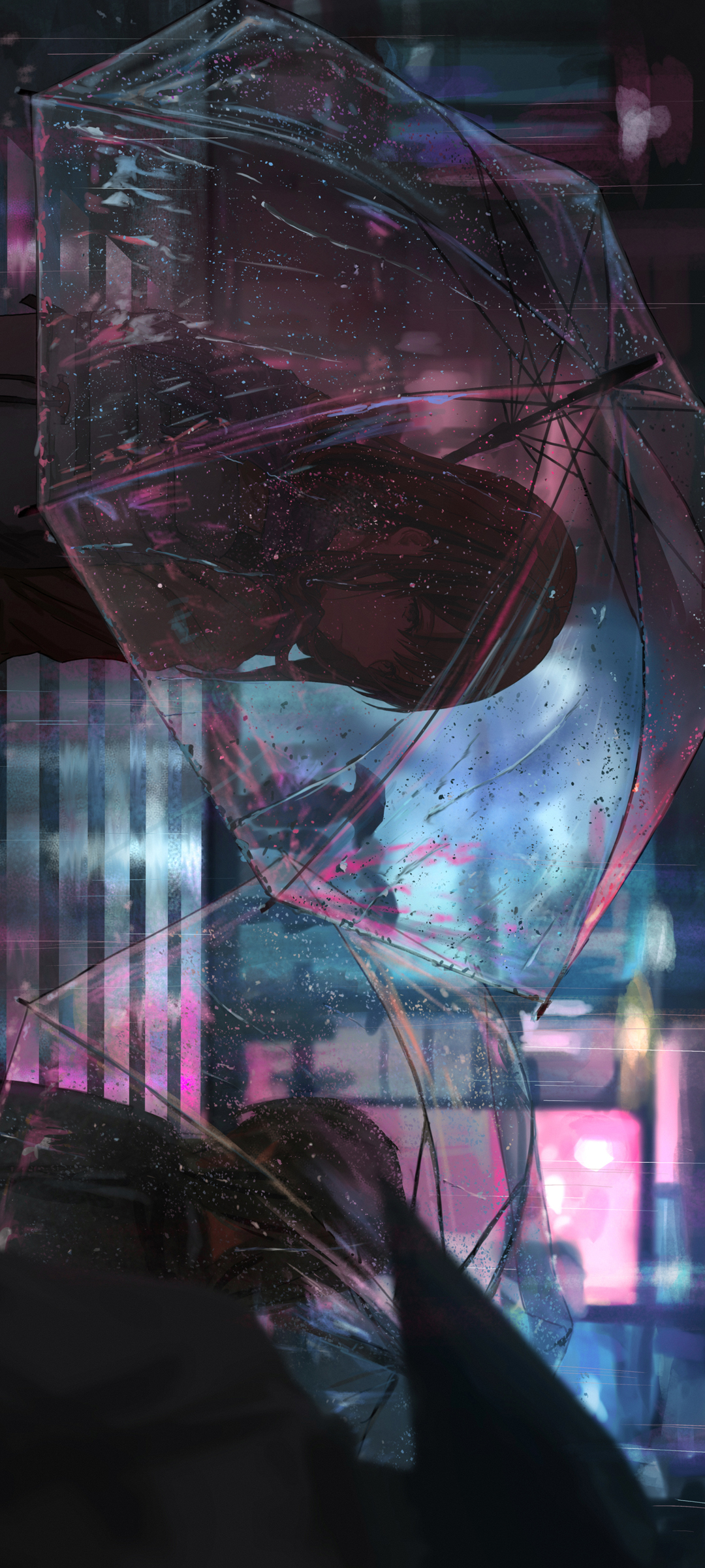 夜晚雨天街道短发女孩蓝色外套动漫手机壁纸免费下载