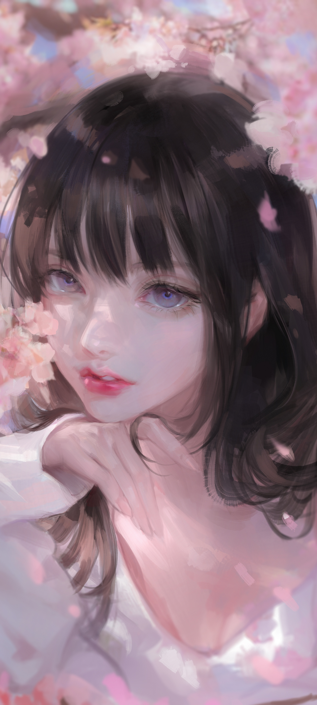 果树荷塘旁女孩古风美女动漫免费手机壁纸下载