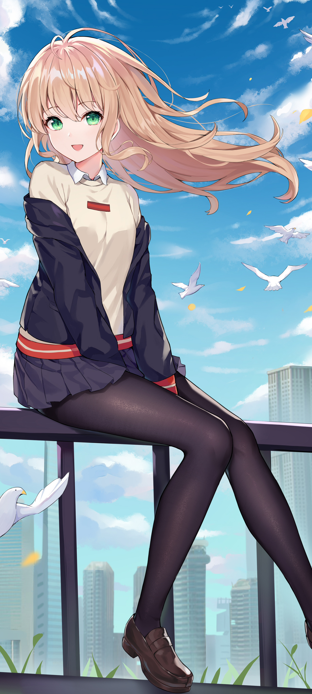 白色运动服动漫美女手机壁纸免费下载