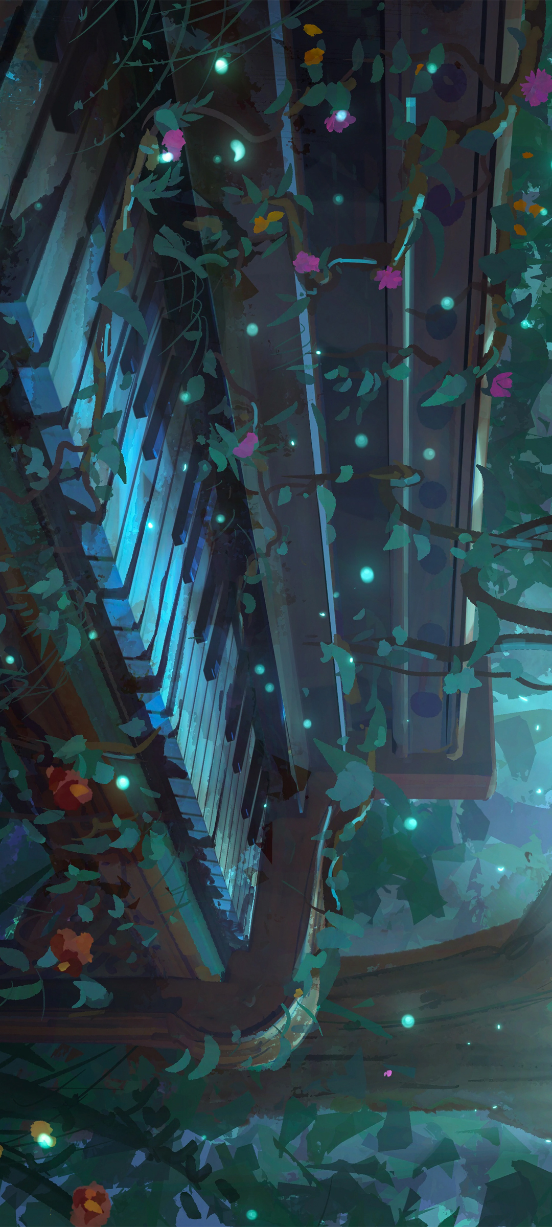 城市女孩与风景云月绘画唯美动漫手机壁纸免费下载