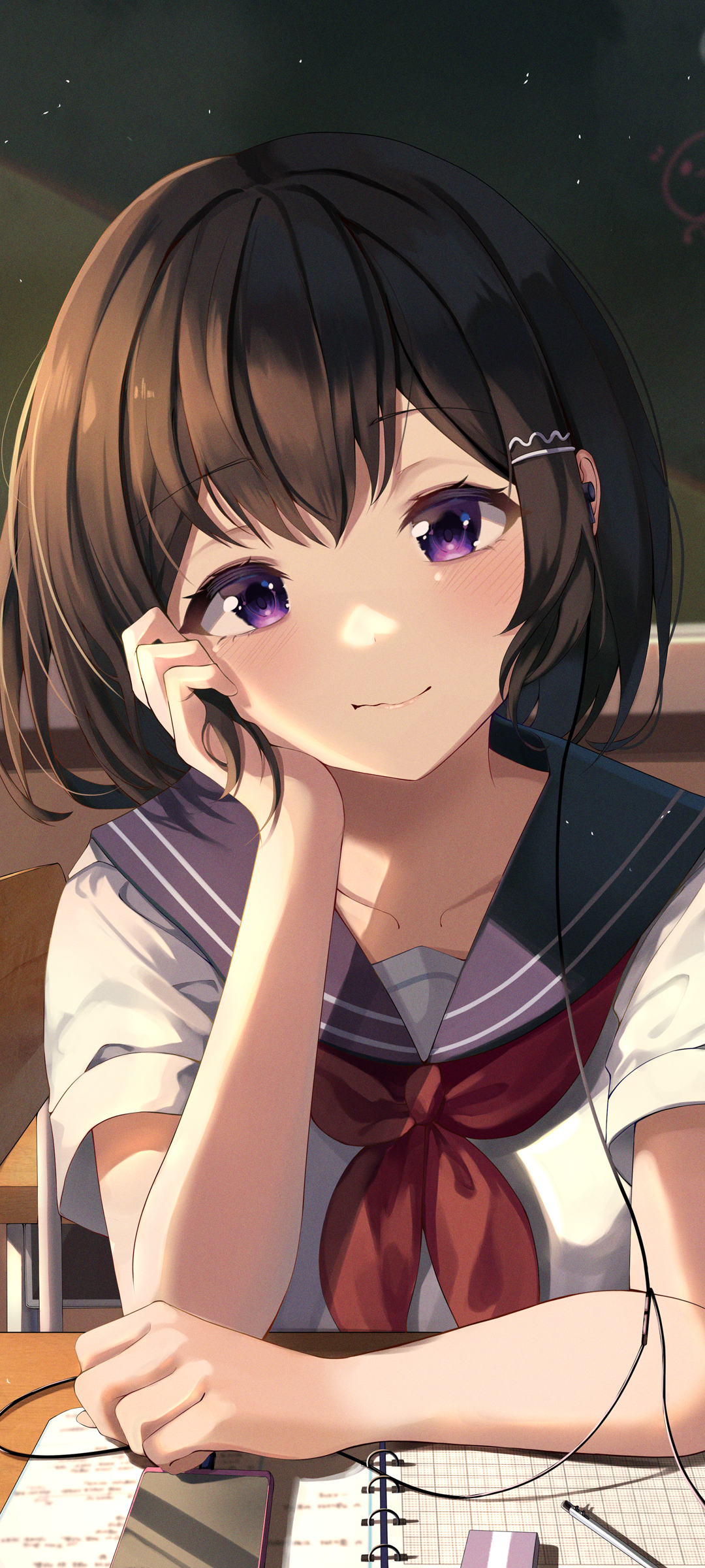 可爱长辫子萝莉女孩学生动漫手机壁纸免费下载