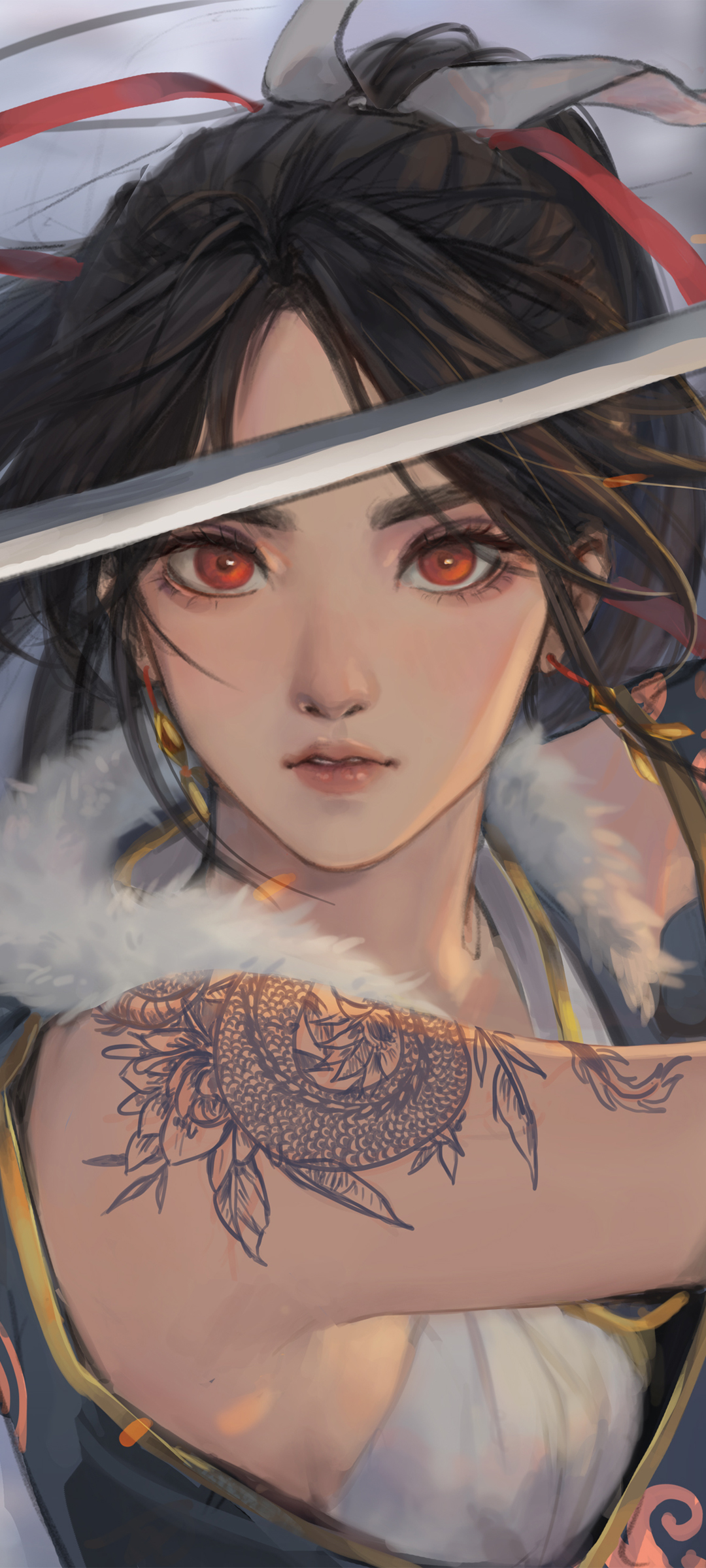 女孩持斗笠剑武士刀动漫手机壁纸免费下载