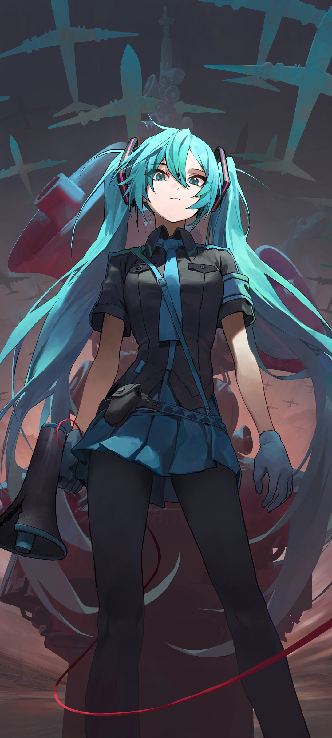 报纸墙双马尾辫女孩动漫手机壁纸免费下载