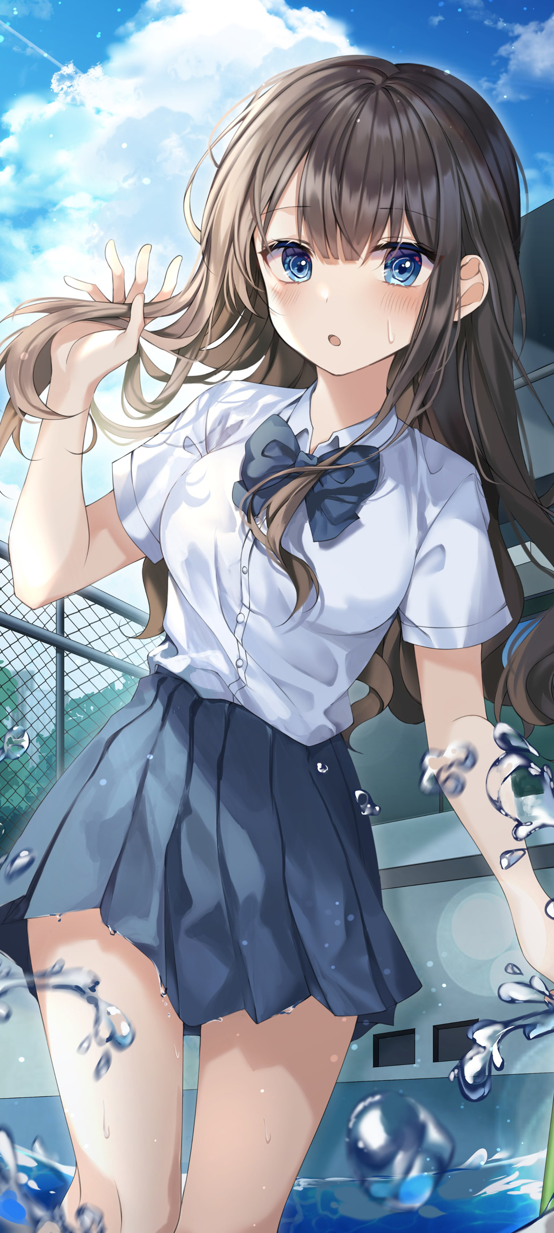 红色蝴蝶结白色衬衫百褶裙动漫女生手机壁纸免费下载