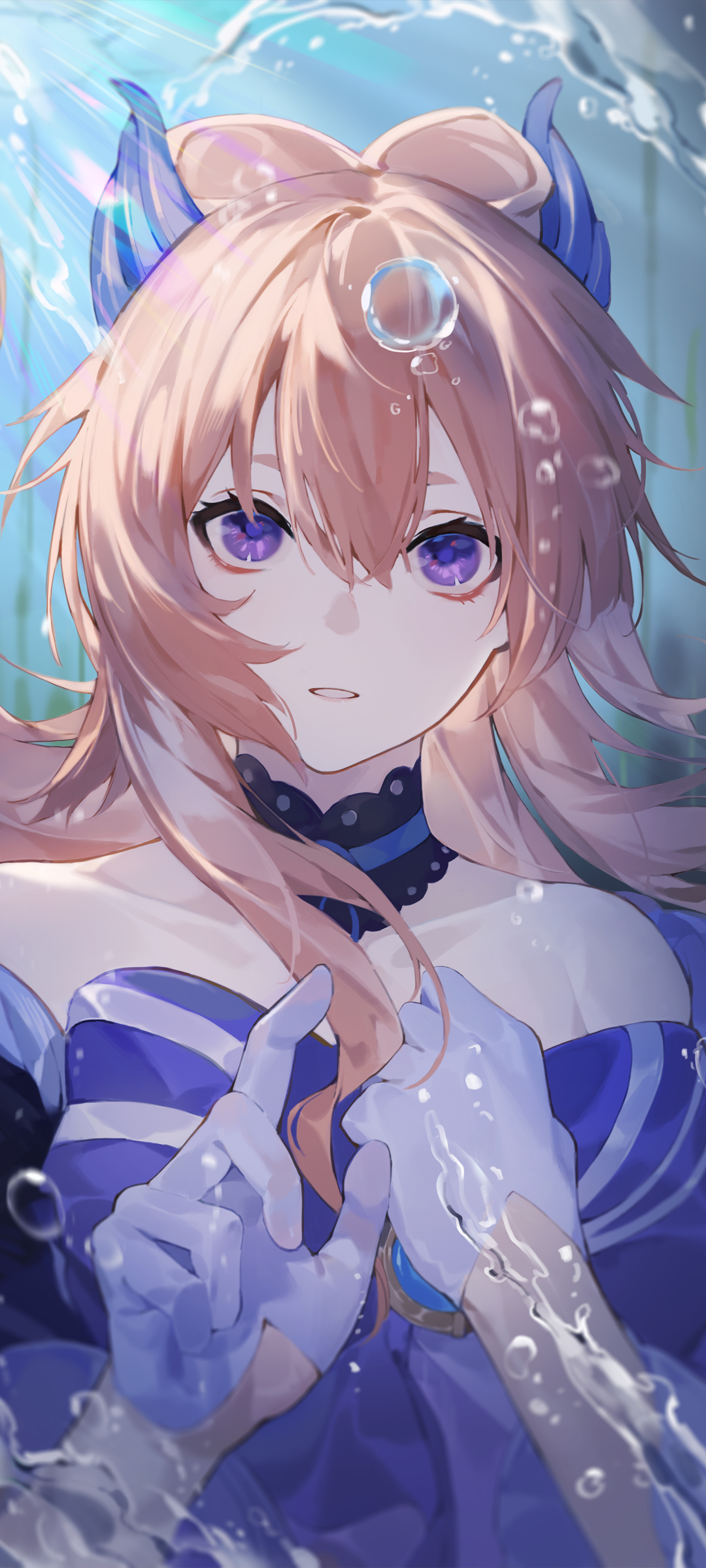 长发波浪可爱动漫女孩全面屏手机壁纸免费下载