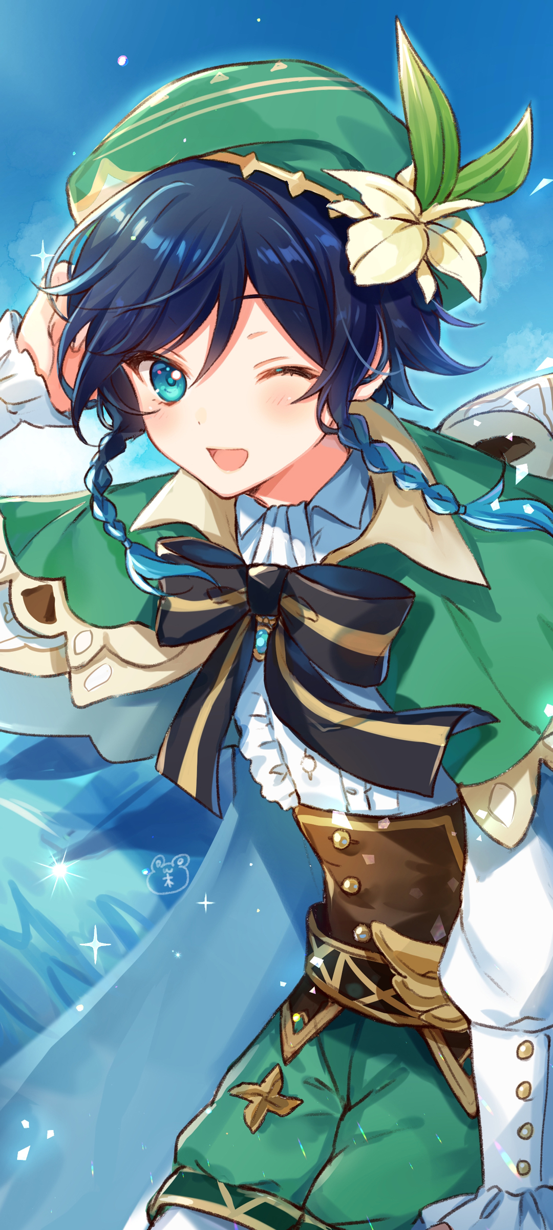 好看唯美古风手绘美女戴帽子穿绿色裙子动漫手机壁纸免费下载