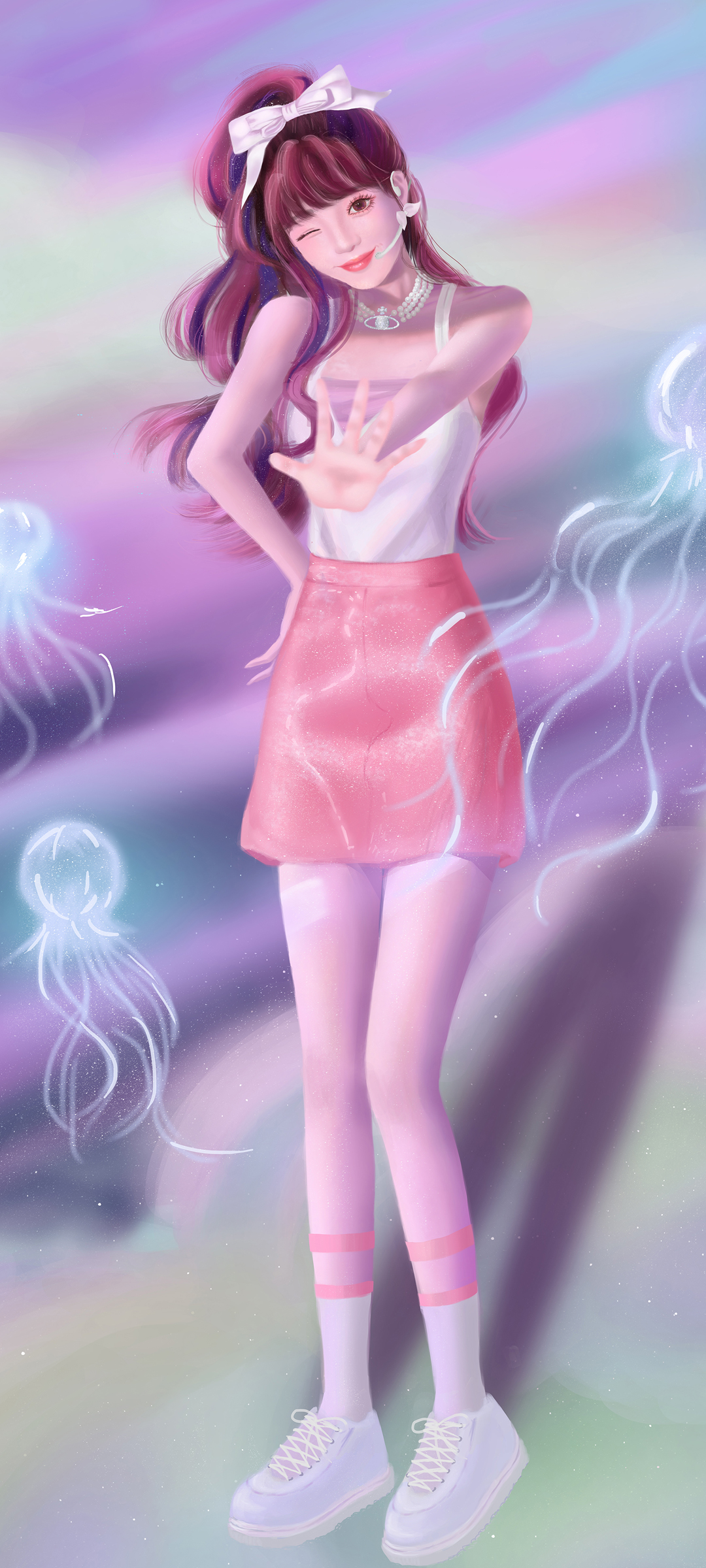 夏天AI动漫风,长美女白色衬衫配黑裙免费手机壁纸下载