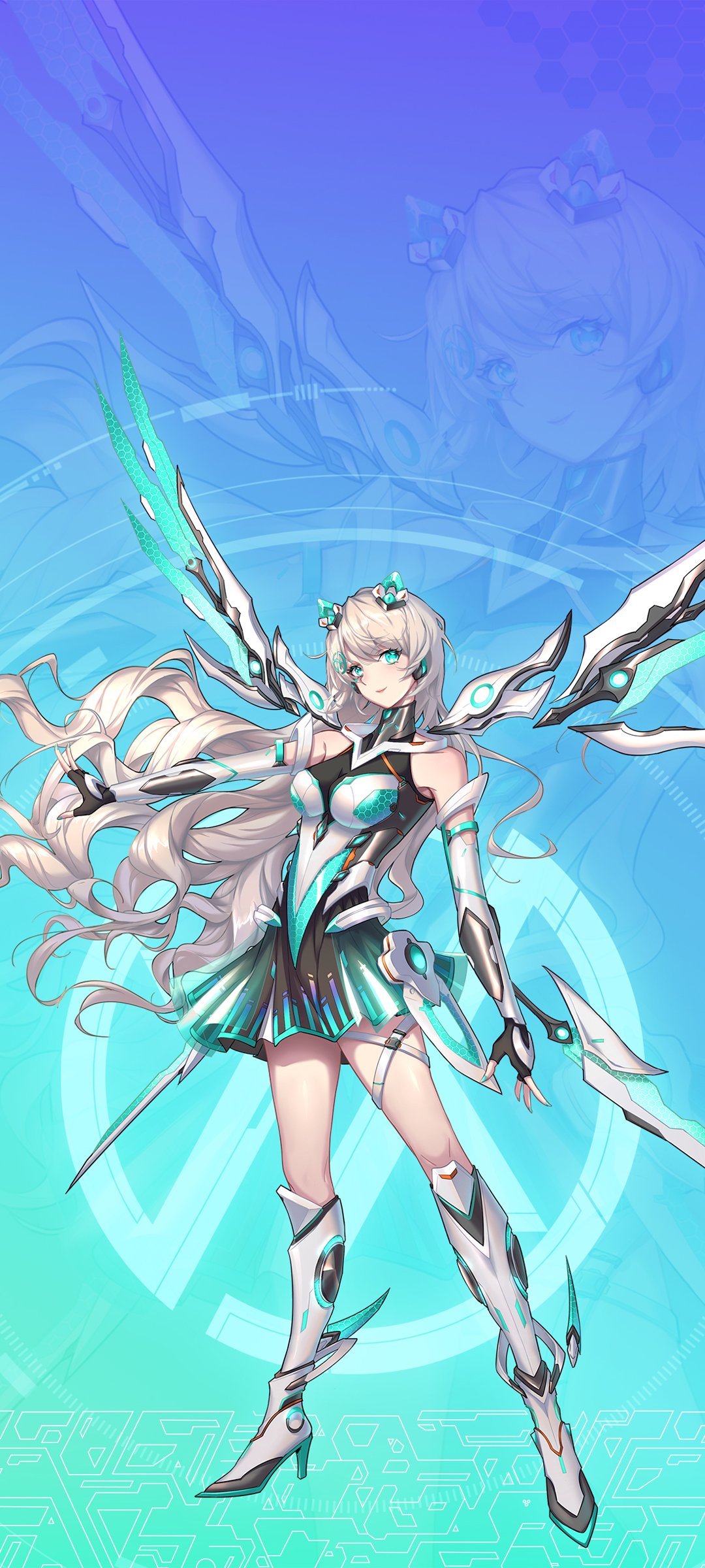 长发波浪可爱动漫女孩全面屏手机壁纸免费下载