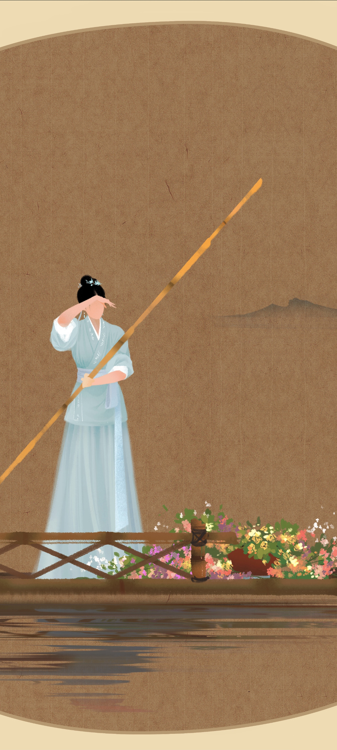 梦华录 船 竹竿 唯美插画手机壁纸图片
