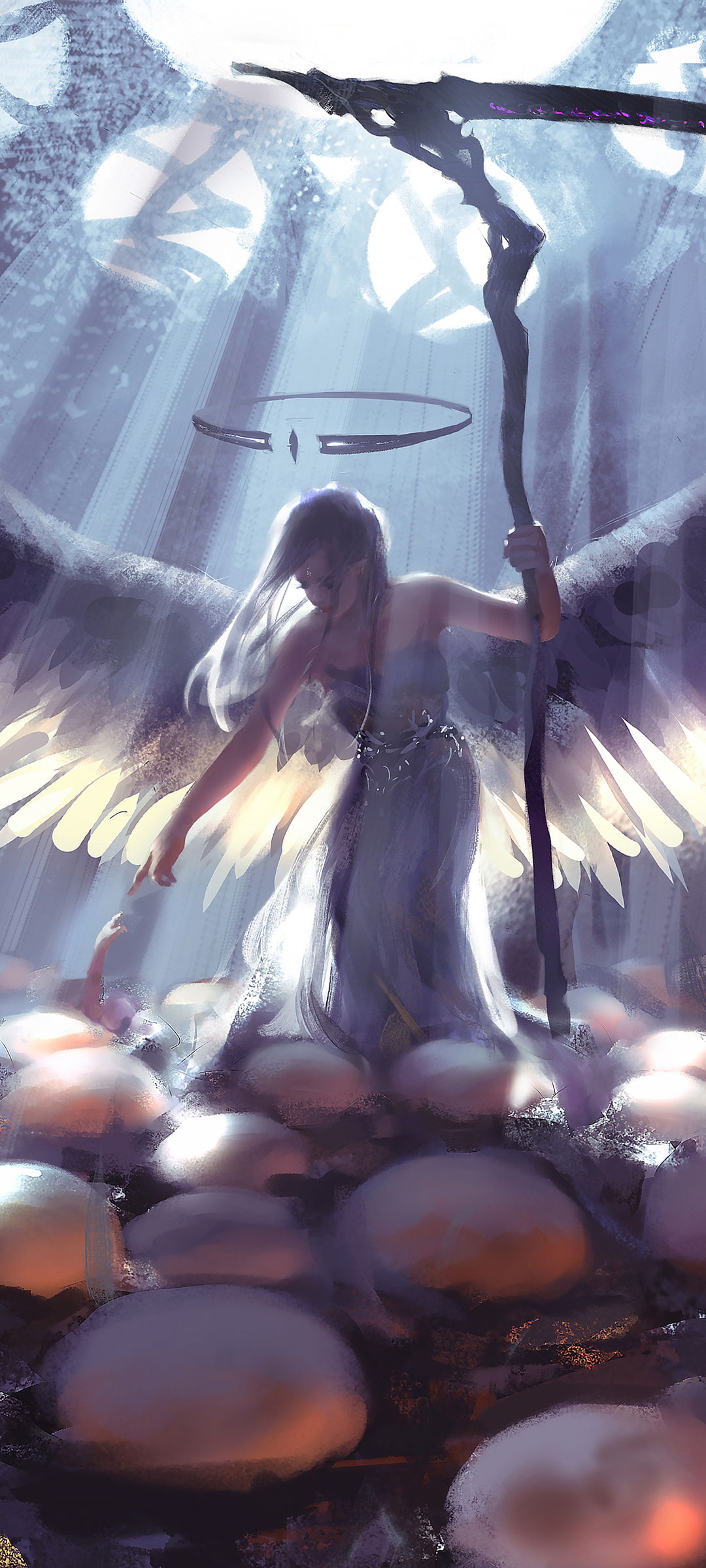 女孩白色长裙子背影 鬼刀高清免费手机壁纸下载
