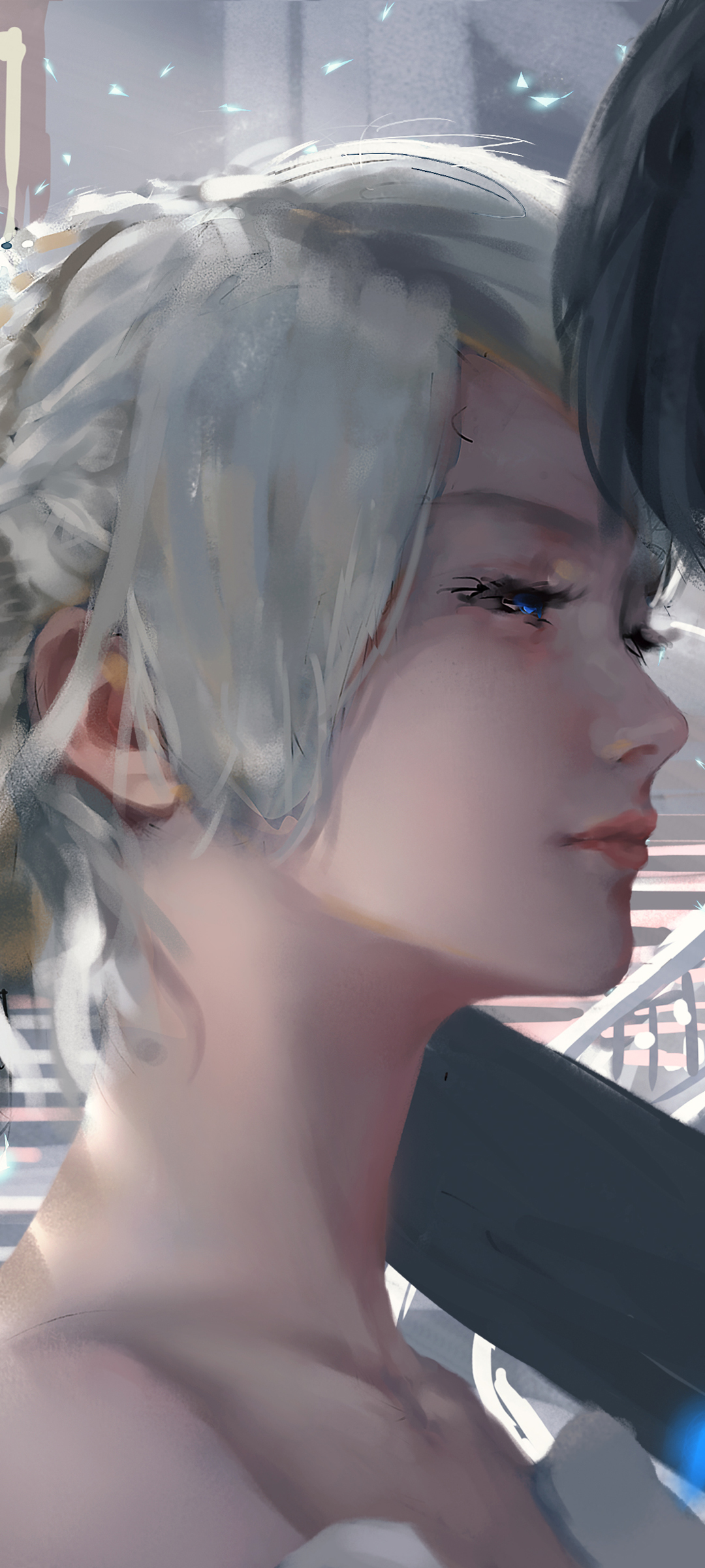 居家长发女孩听音乐 WLOP鬼刀免费手机壁纸下载