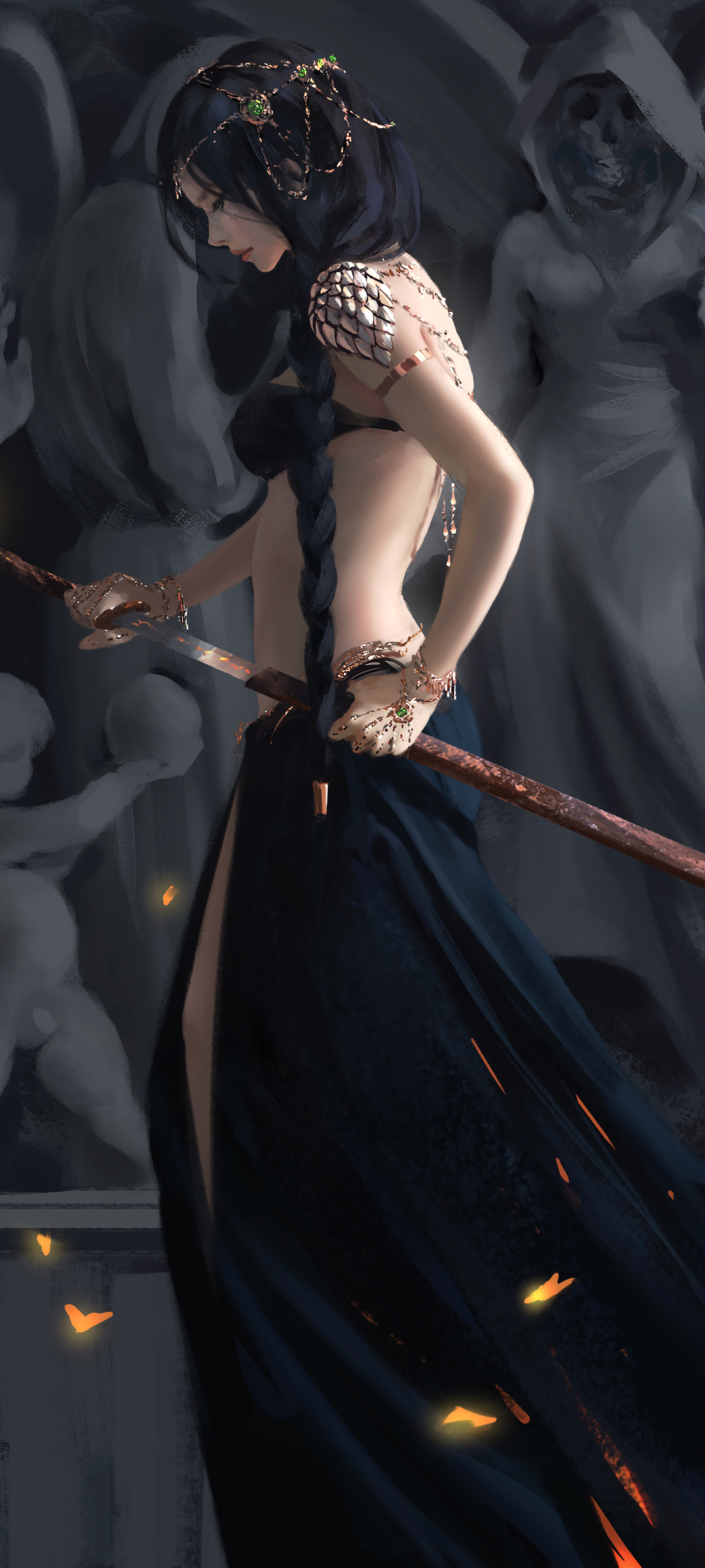 鬼刀女神背部美腿唯美身材骷髅元素免费手机壁纸下载