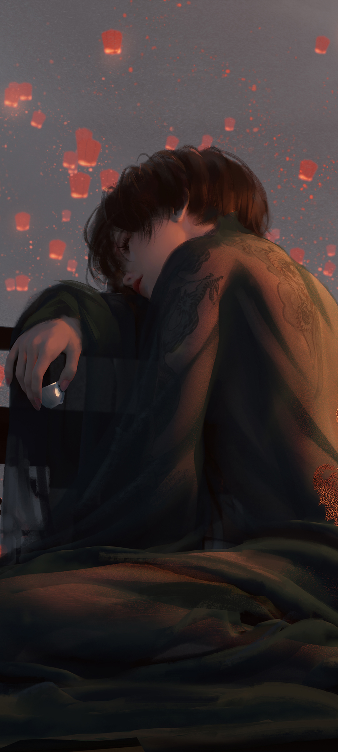 长发少女背影厚涂画 鬼刀免费手机壁纸下载