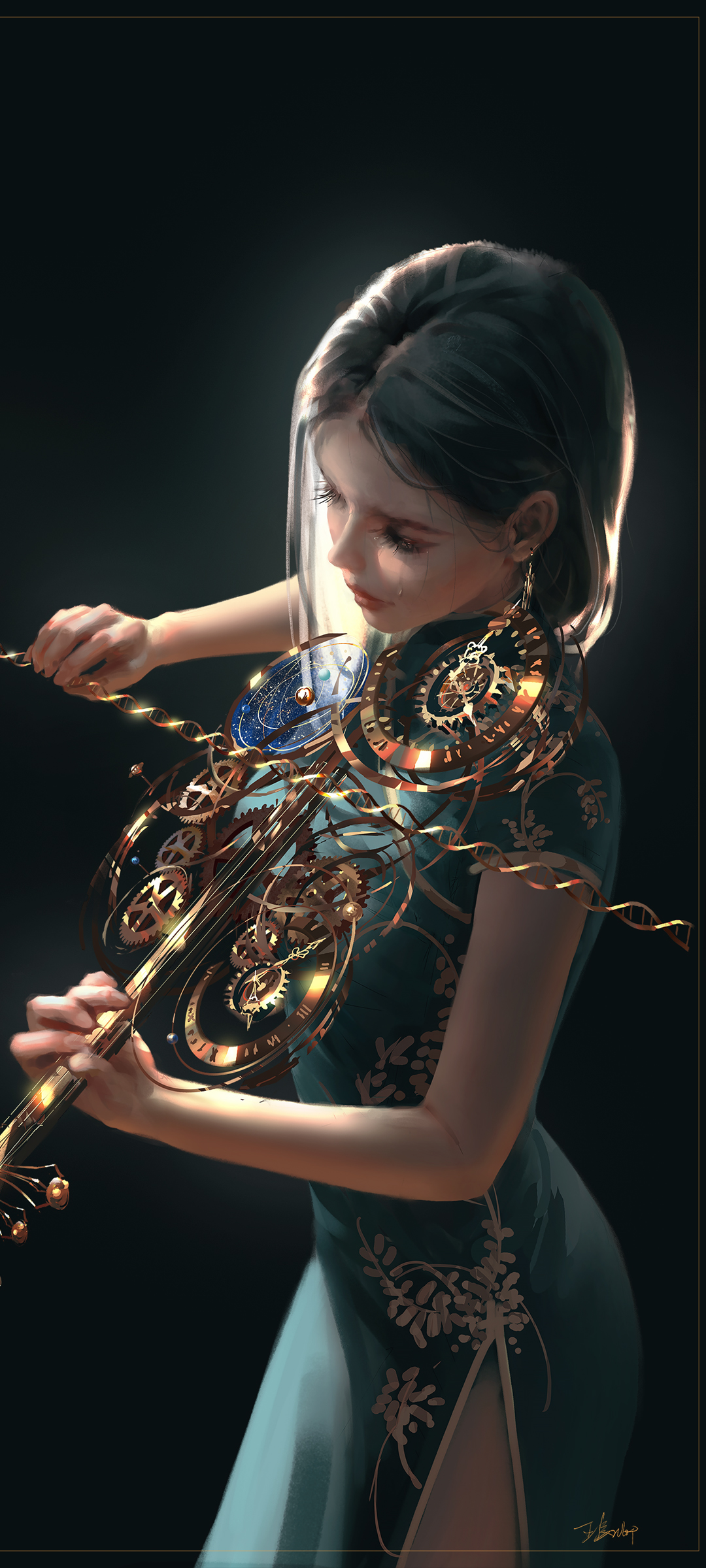 美女旗袍小提琴机械齿轮鬼刀高清免费手机壁纸下载