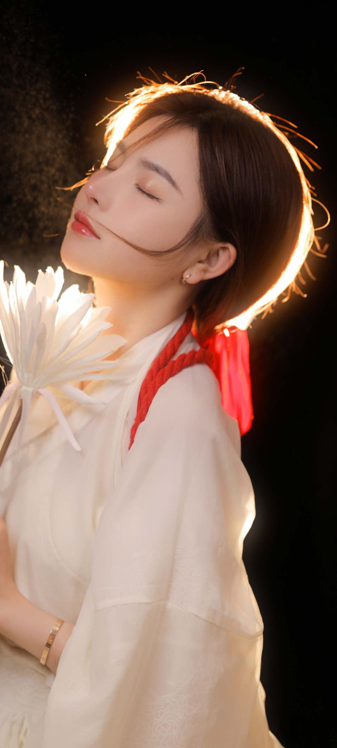 鞠婧祎 可爱手势 白色蝴蝶结裙 手机壁纸