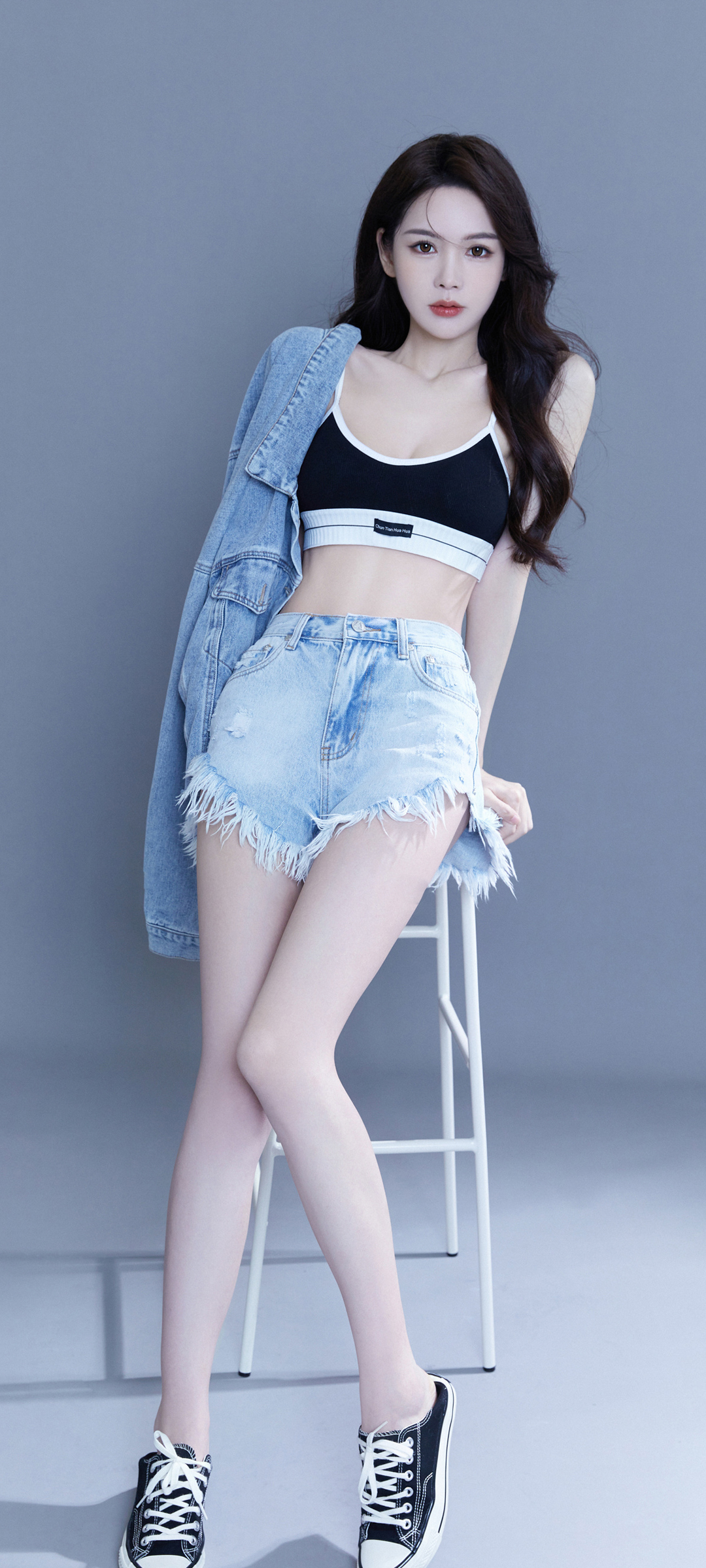 牛仔短裙美腿美女手机壁纸