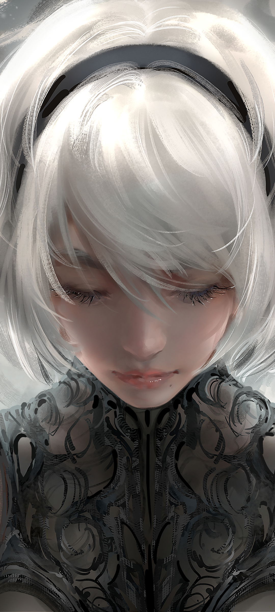 尼尔 2b 厚涂画 全面屏手机壁纸