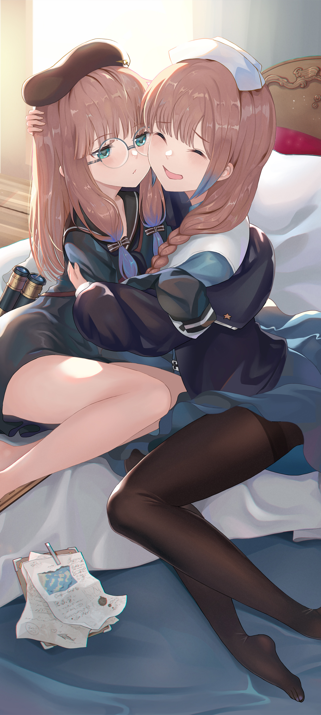 二次元好看动漫美女美腿壁纸,女孩抱着女孩免费手机壁纸下载