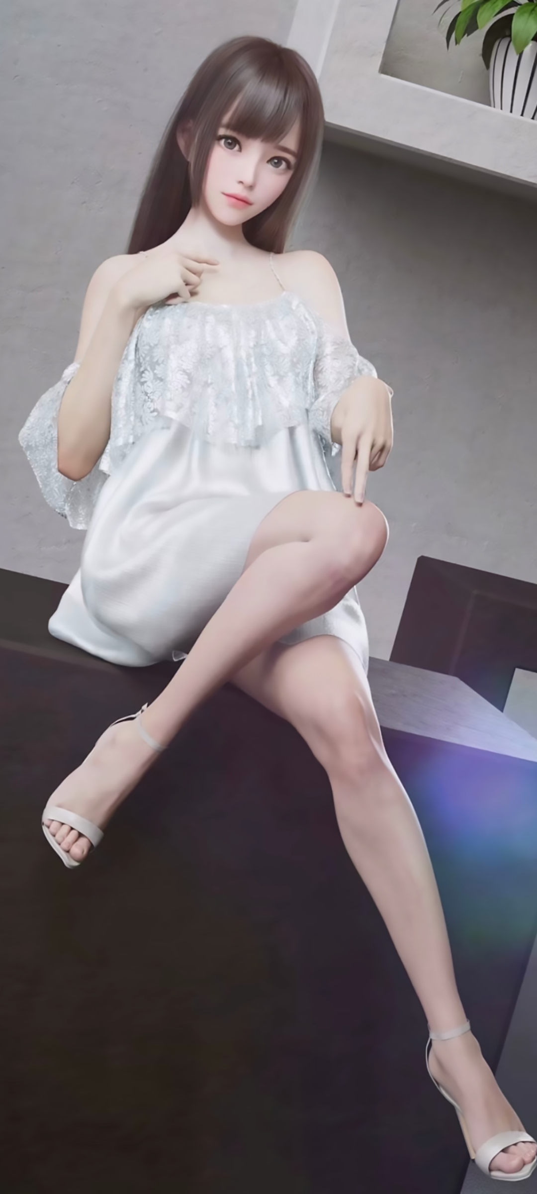 3D可爱动漫美女美腿白色裙子 免费手机壁纸下载
