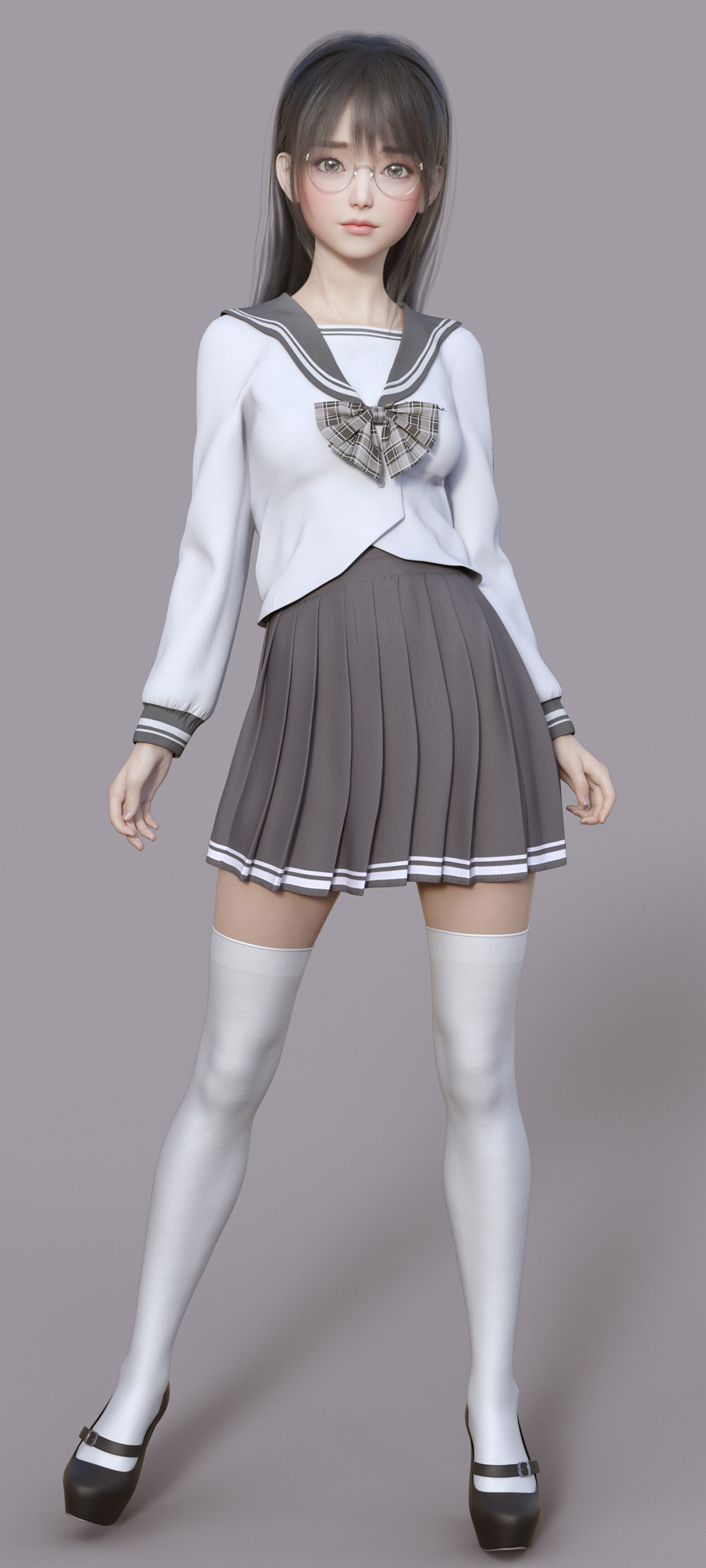 jk制服可爱3D少女全面屏手机壁纸