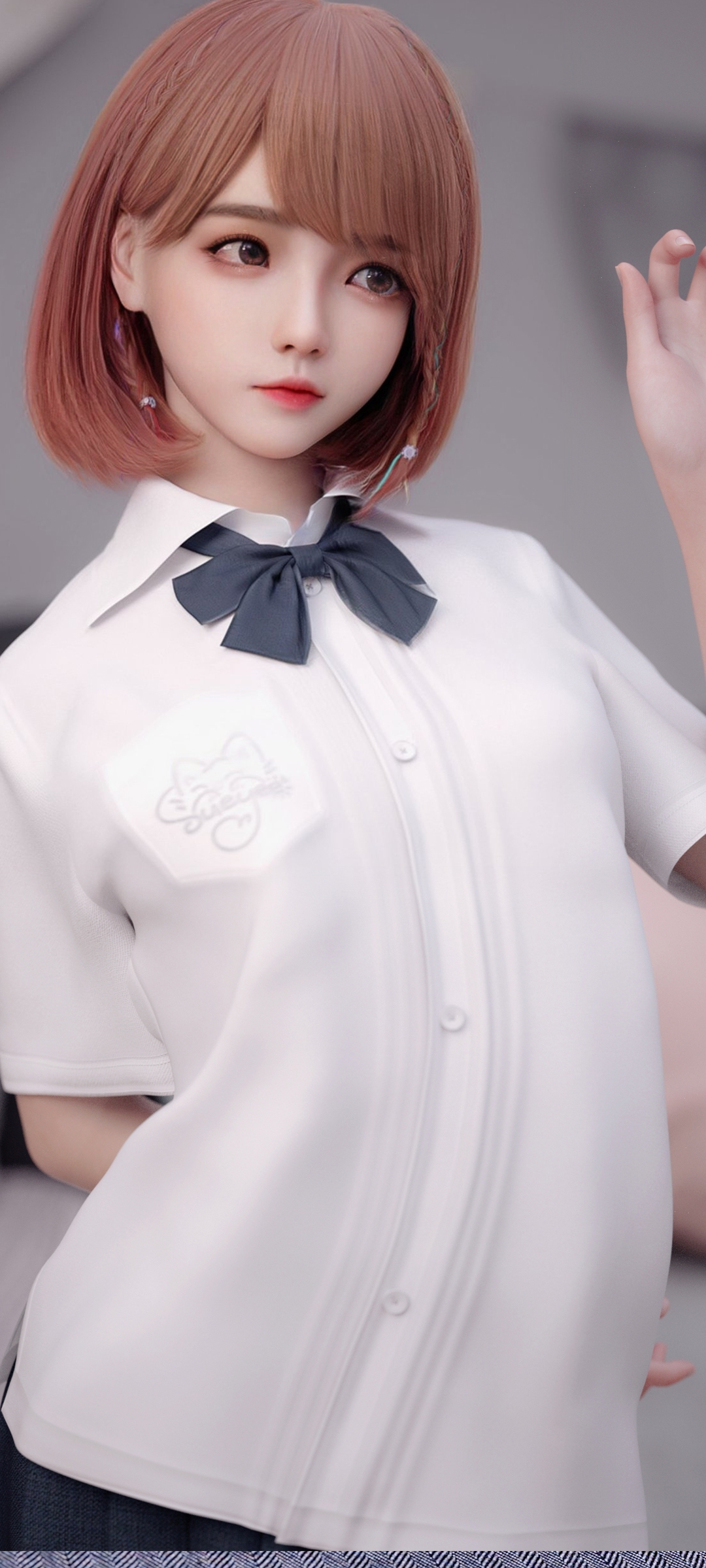 时尚个性女孩白色裤子配耳机动漫全屏手机壁纸免费下载