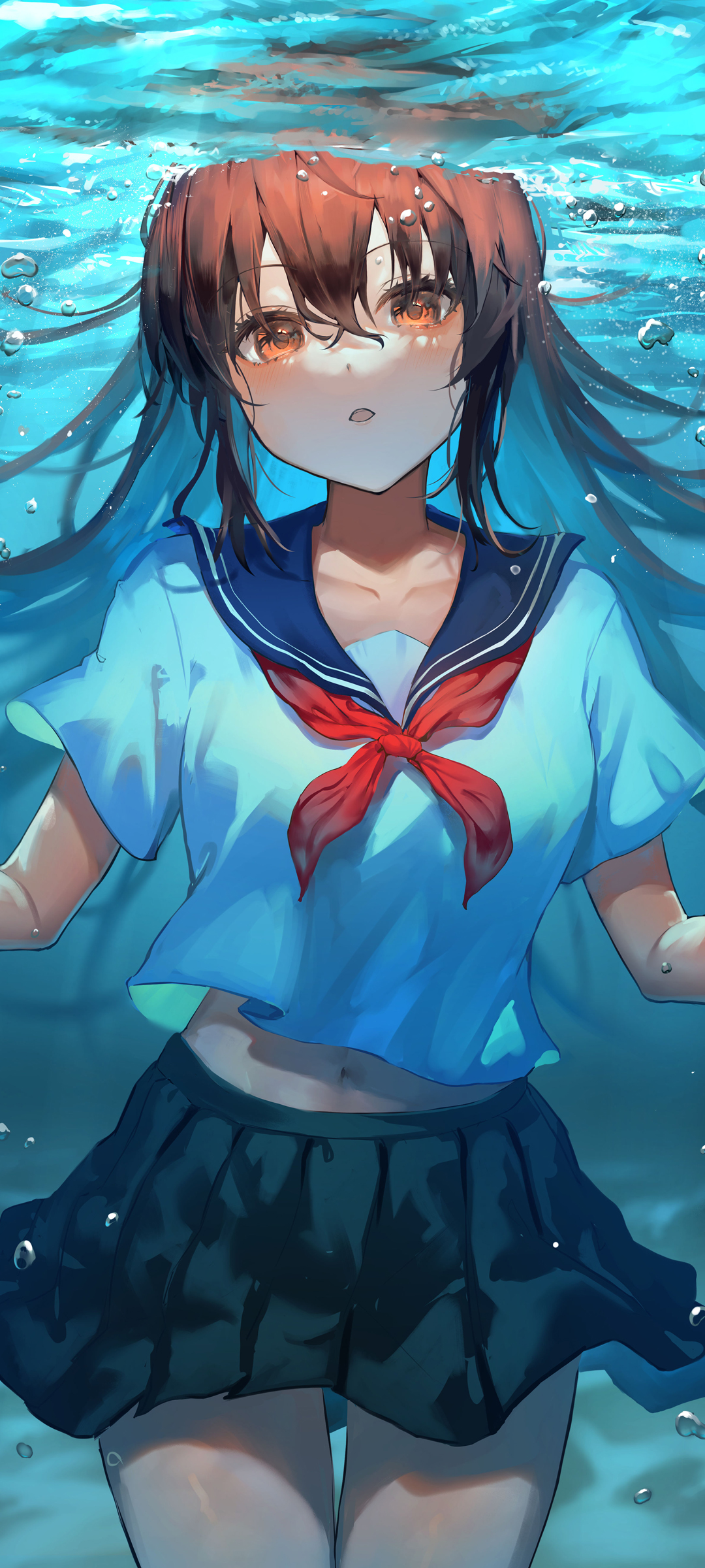 女生红色眼睛水手服帽子动漫全屏手机壁纸免费下载