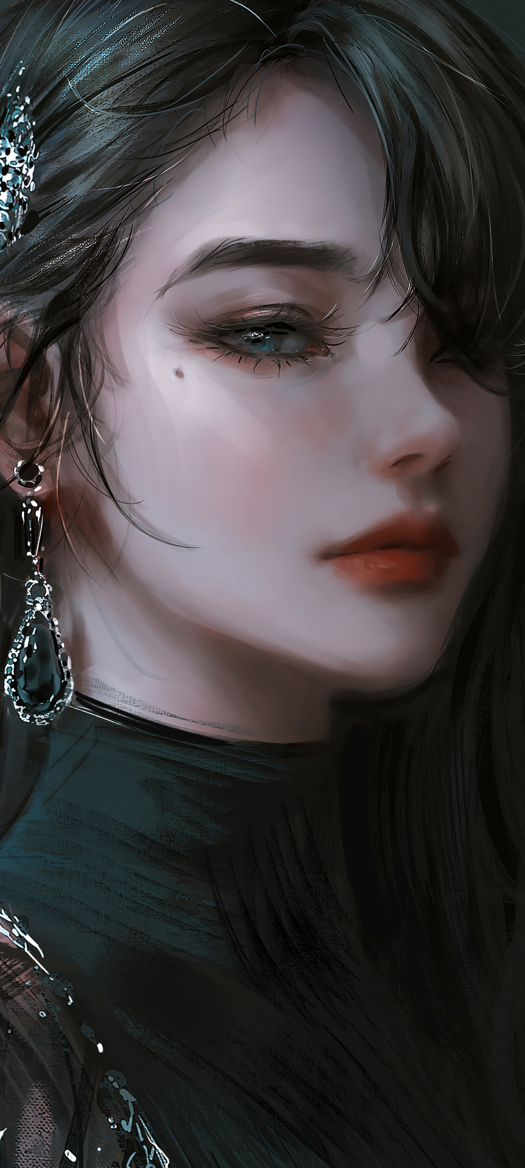 厚涂画动漫女孩侧脸耳环全面屏手机壁纸免费下载