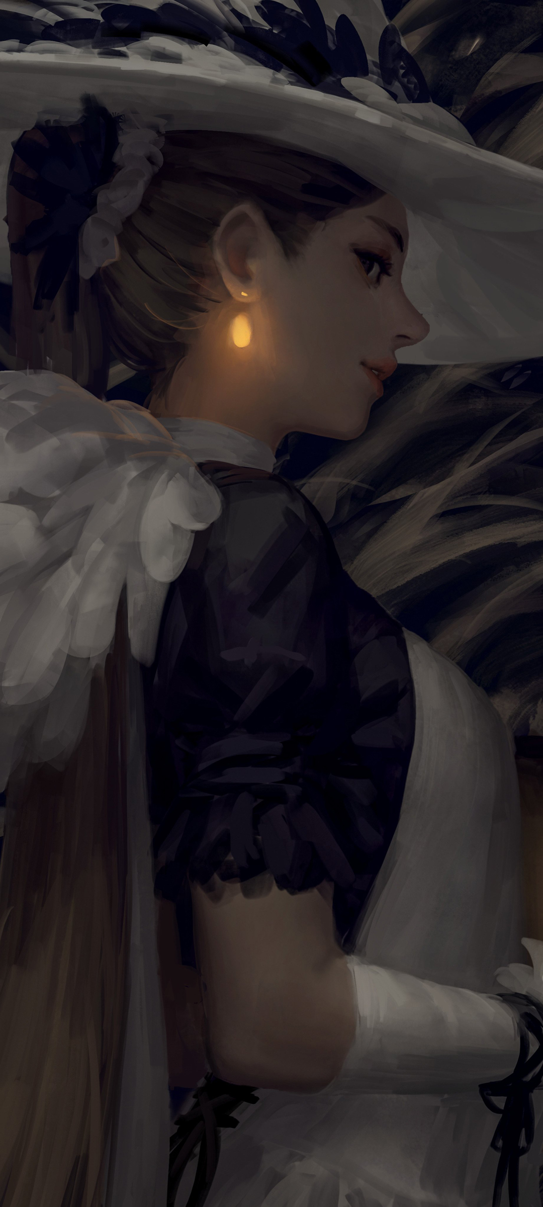帽子 女孩 发光耳环 侧面 动漫全屏手机壁纸