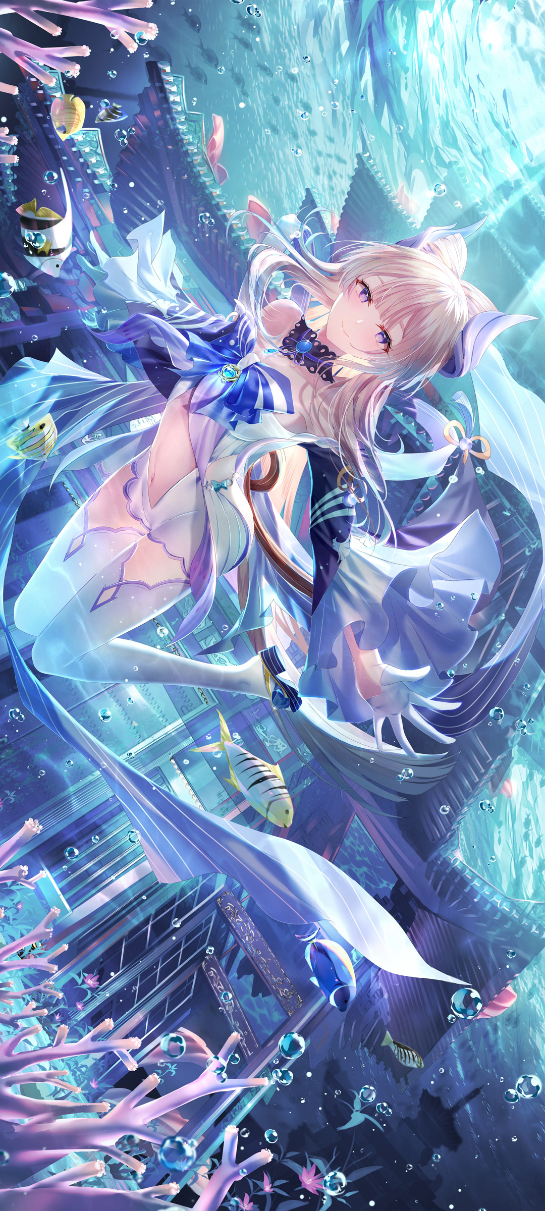 一手托腮长发兽角女孩动漫手机壁纸免费下载