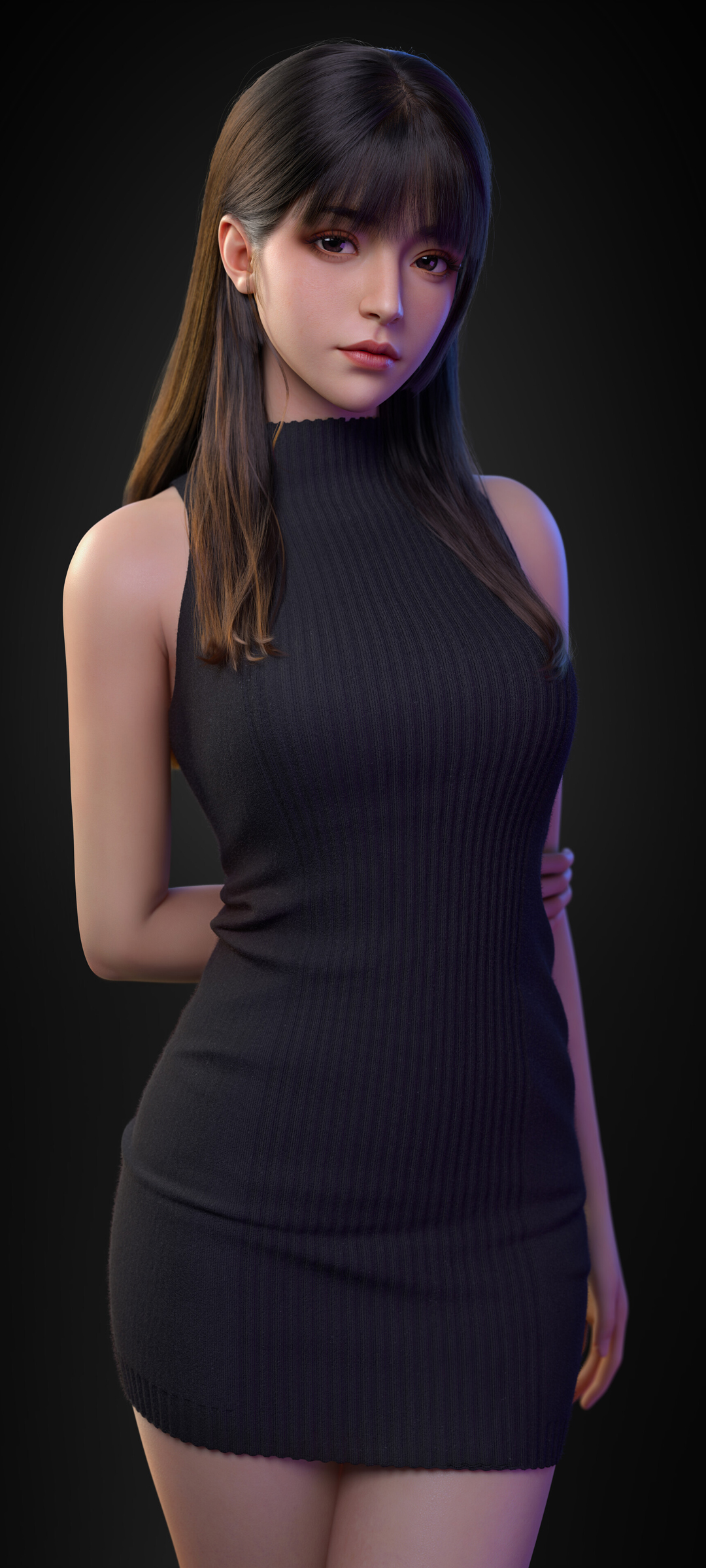 黑色毛衣连衣裙性感3D美女动漫手机壁纸免费下载