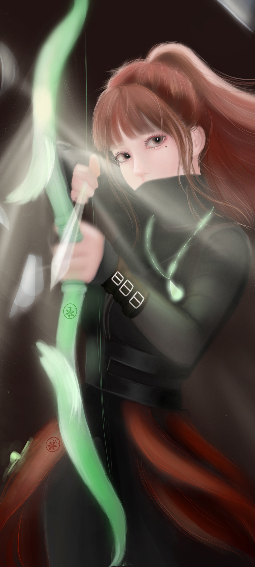 长发 双肩包 动漫女孩 黑色丝袜 全面屏手机壁纸