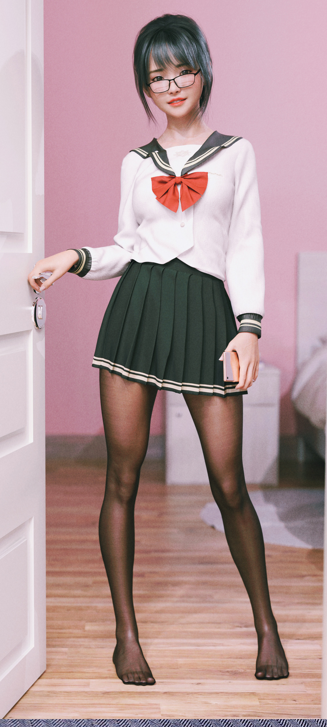 打开门的女孩 制服 百褶裙黑色丝袜动漫手机壁纸