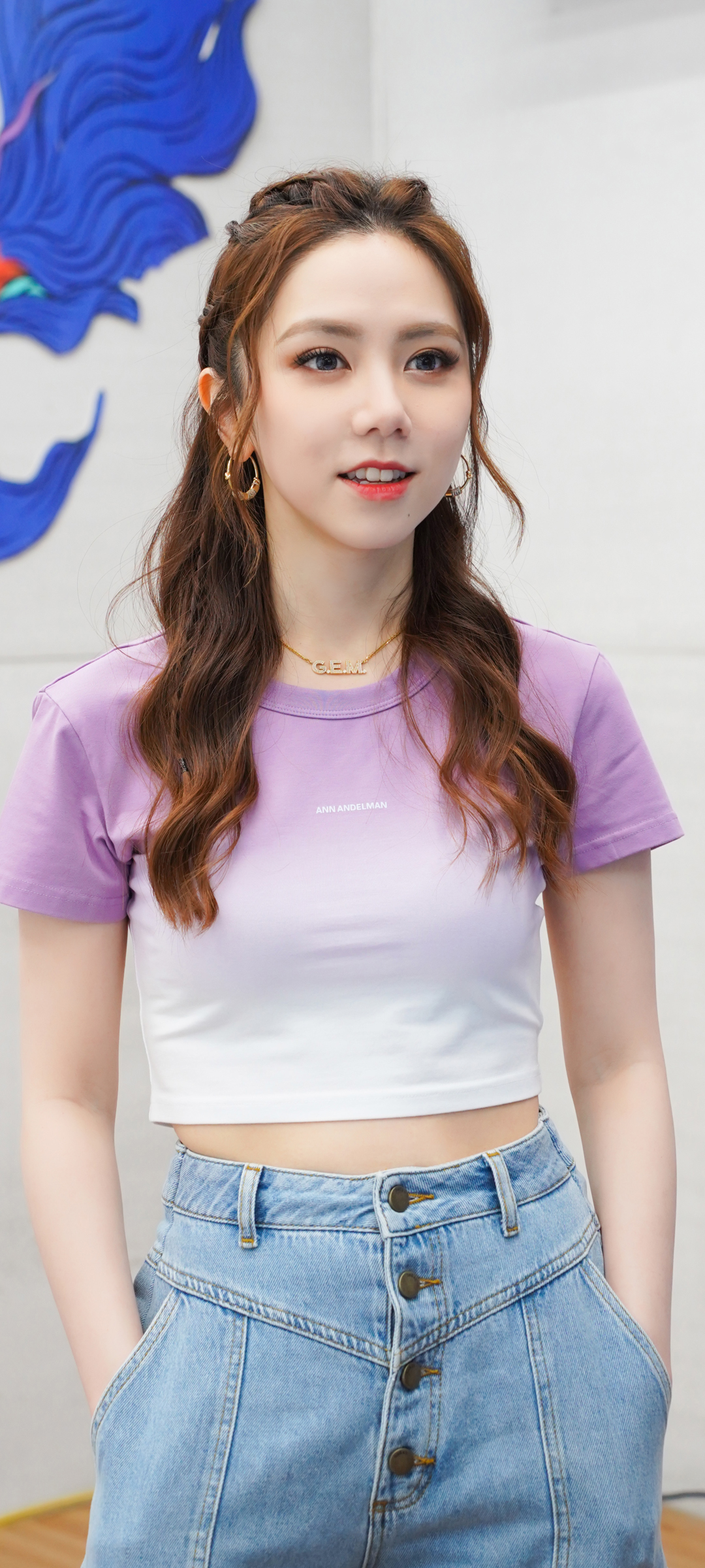 居家长发美女穿毛衣灰色牛仔短裤美腿手机壁纸免费下载