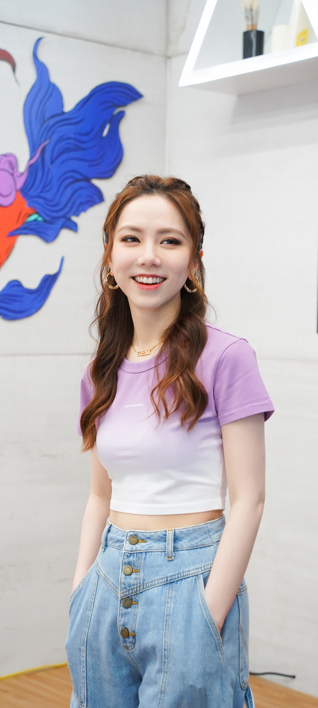 杨幂清爽薄荷蓝套装美女高清免费手机壁纸下载