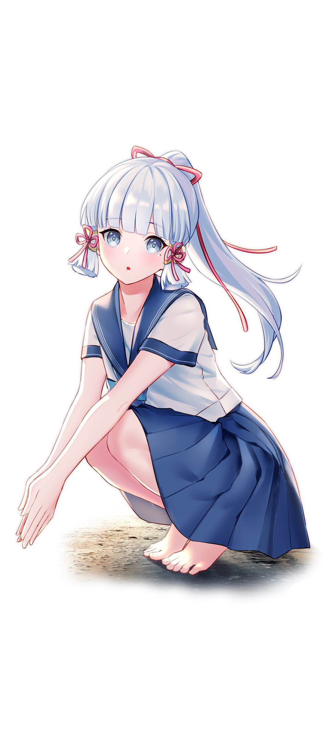 原神神里绫华 水手服 全面屏手机桌面壁纸