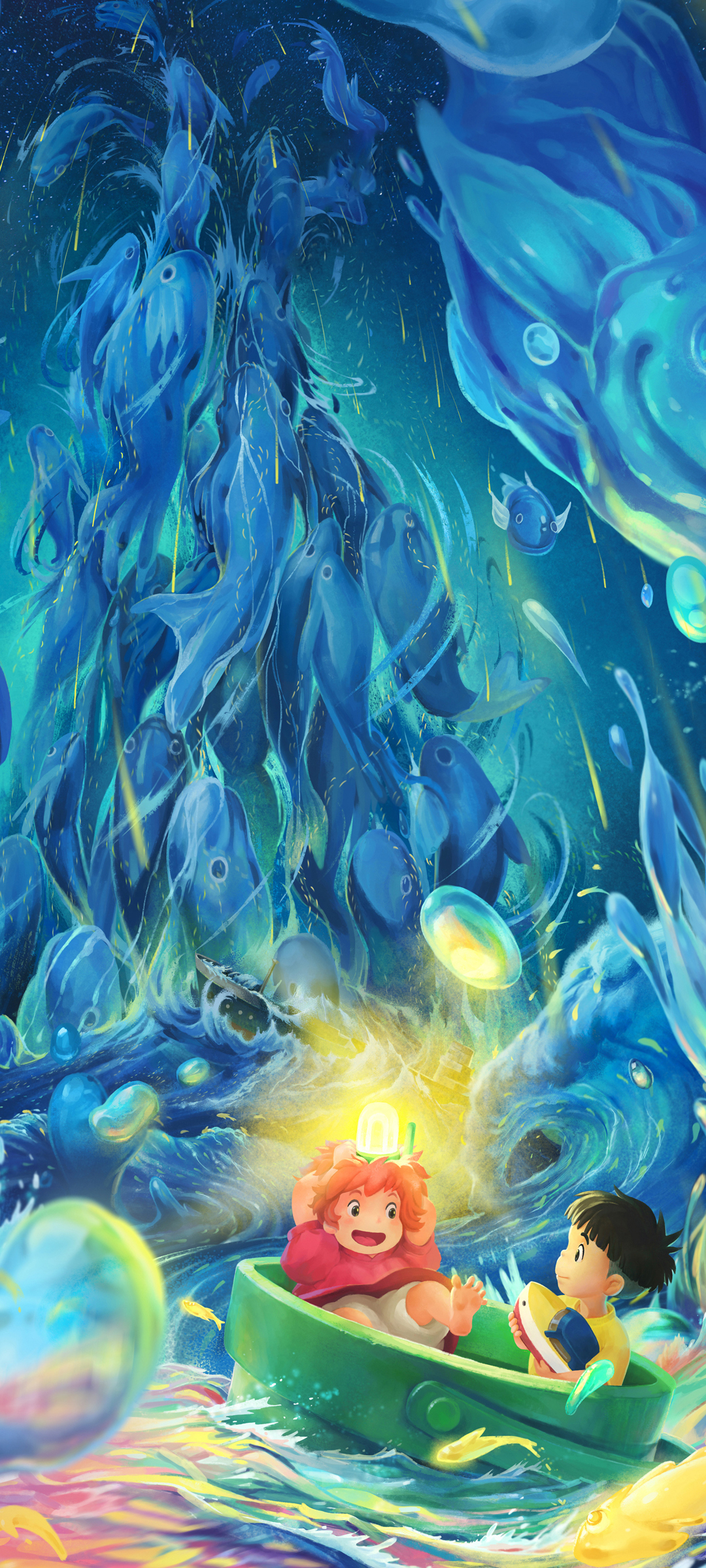 水中蓝色眼睛动漫少女手机壁纸免费下载
