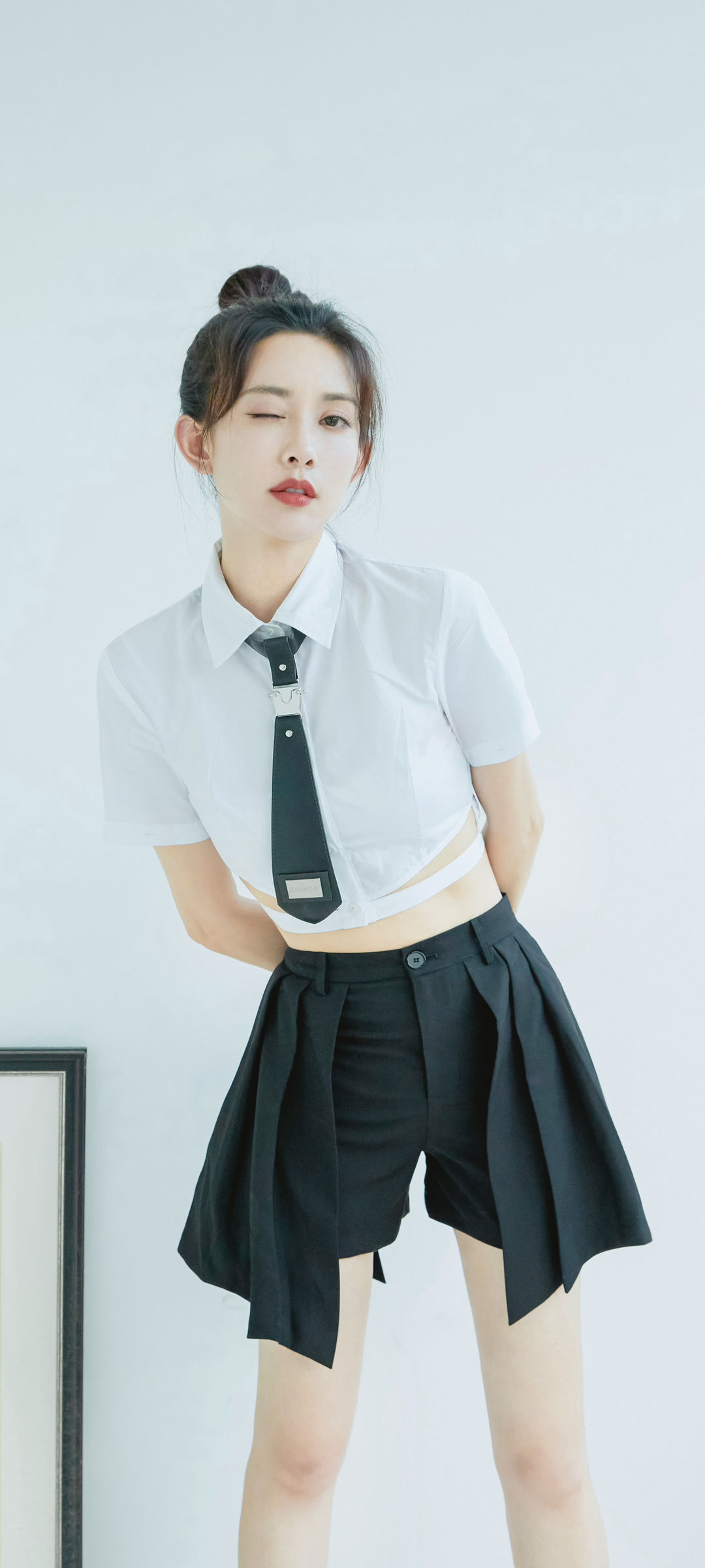 小巧身材美女美腿 小清新蓝色短裙子美女马尾辫手机壁纸