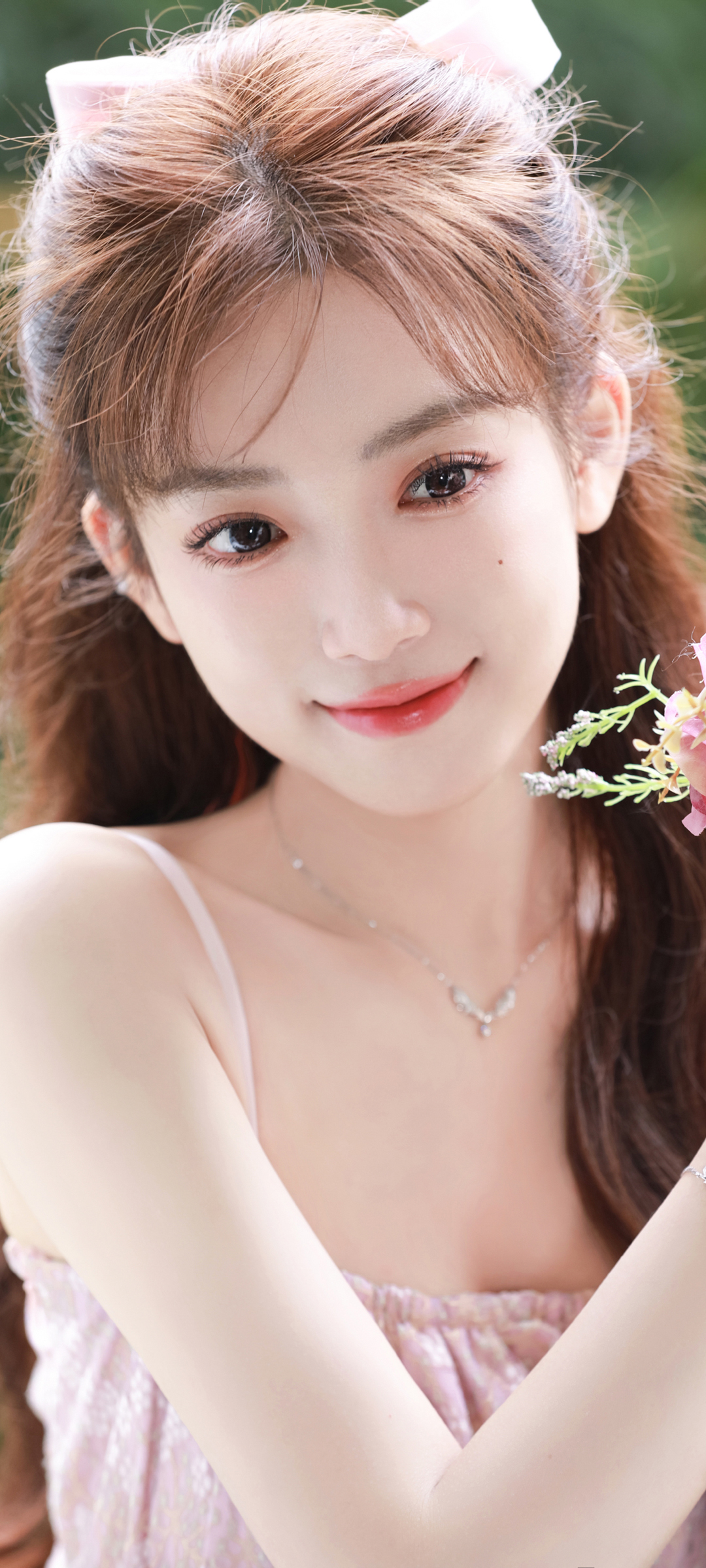 居家公主风粉色裙子养眼美女免费手机壁纸下载