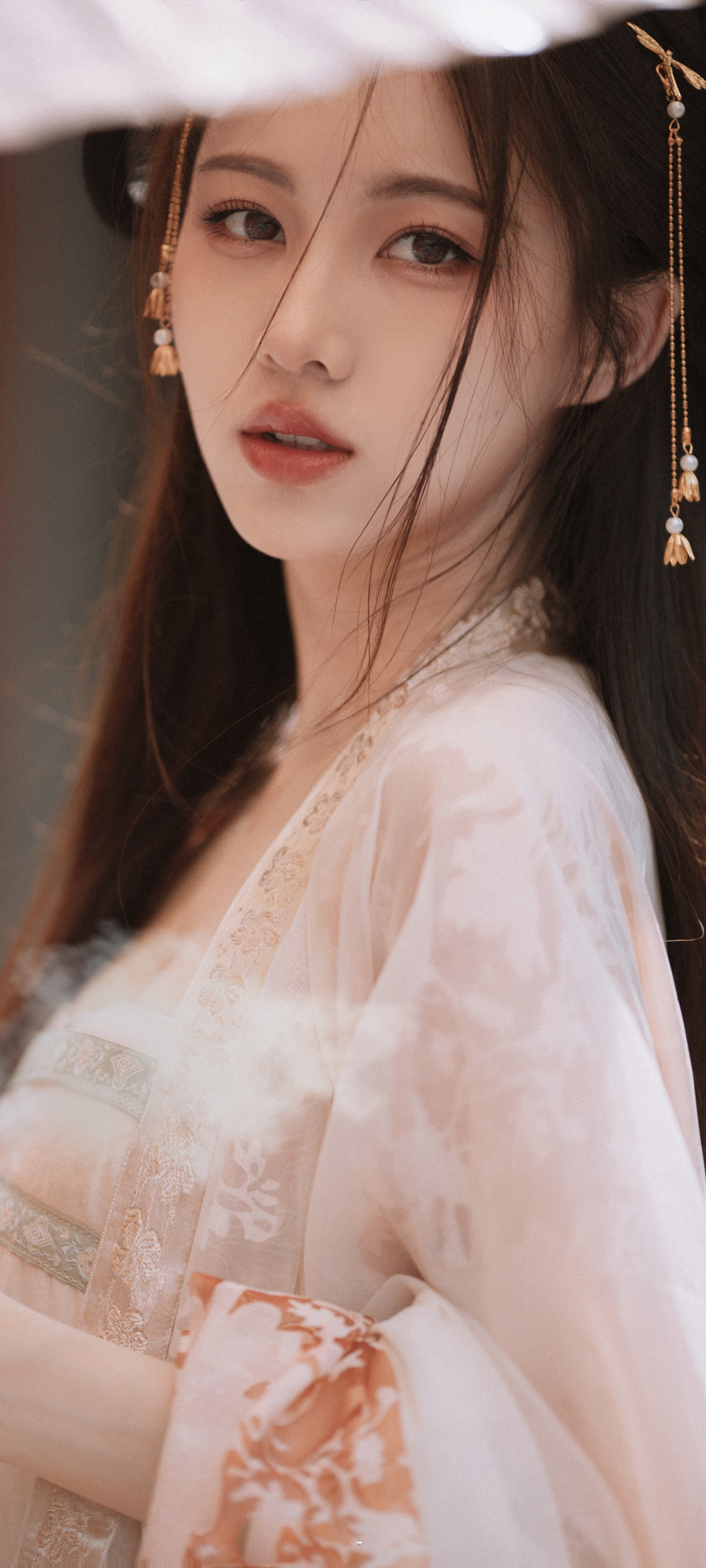 长发白裙养眼美女曹婉瑾免费手机壁纸下载
