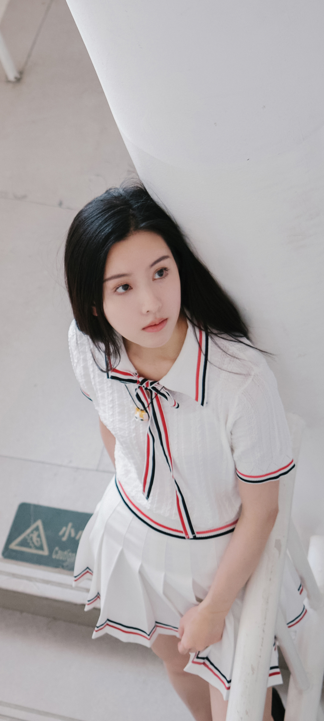 白色百褶裙陈都灵高清全面屏手机壁纸免费下载