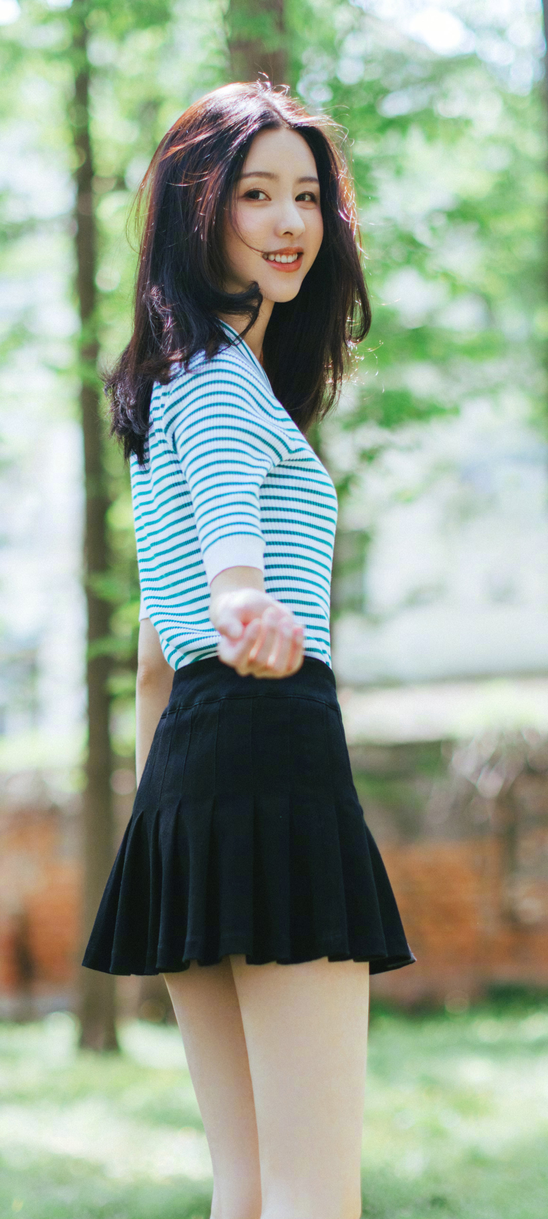 黑色百褶裙养眼美腿可爱美女陈都灵高清手机桌面壁纸