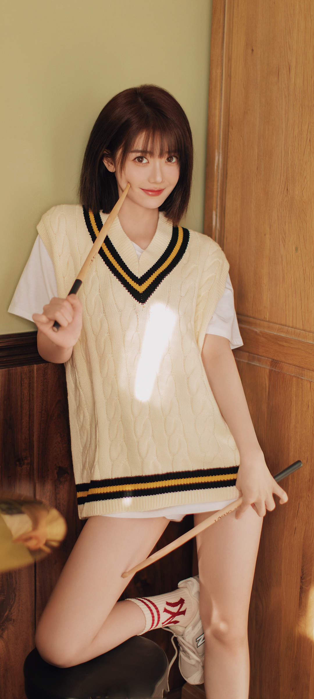 可爱短发美女 好看身材 毛衣 白色衣服长腿美女手机壁纸
