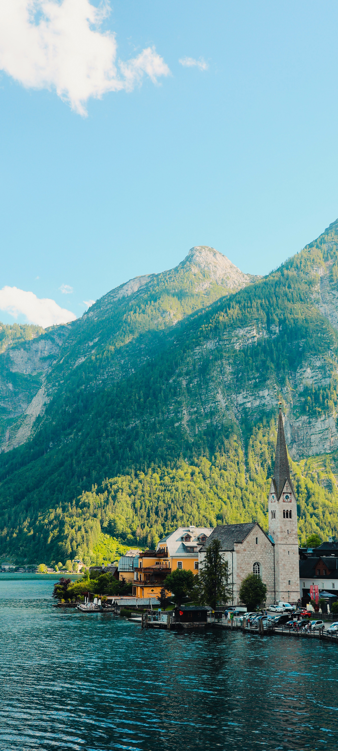 俯视视角下的秋天风景树水 华为Mate40高清免费手机壁纸下载