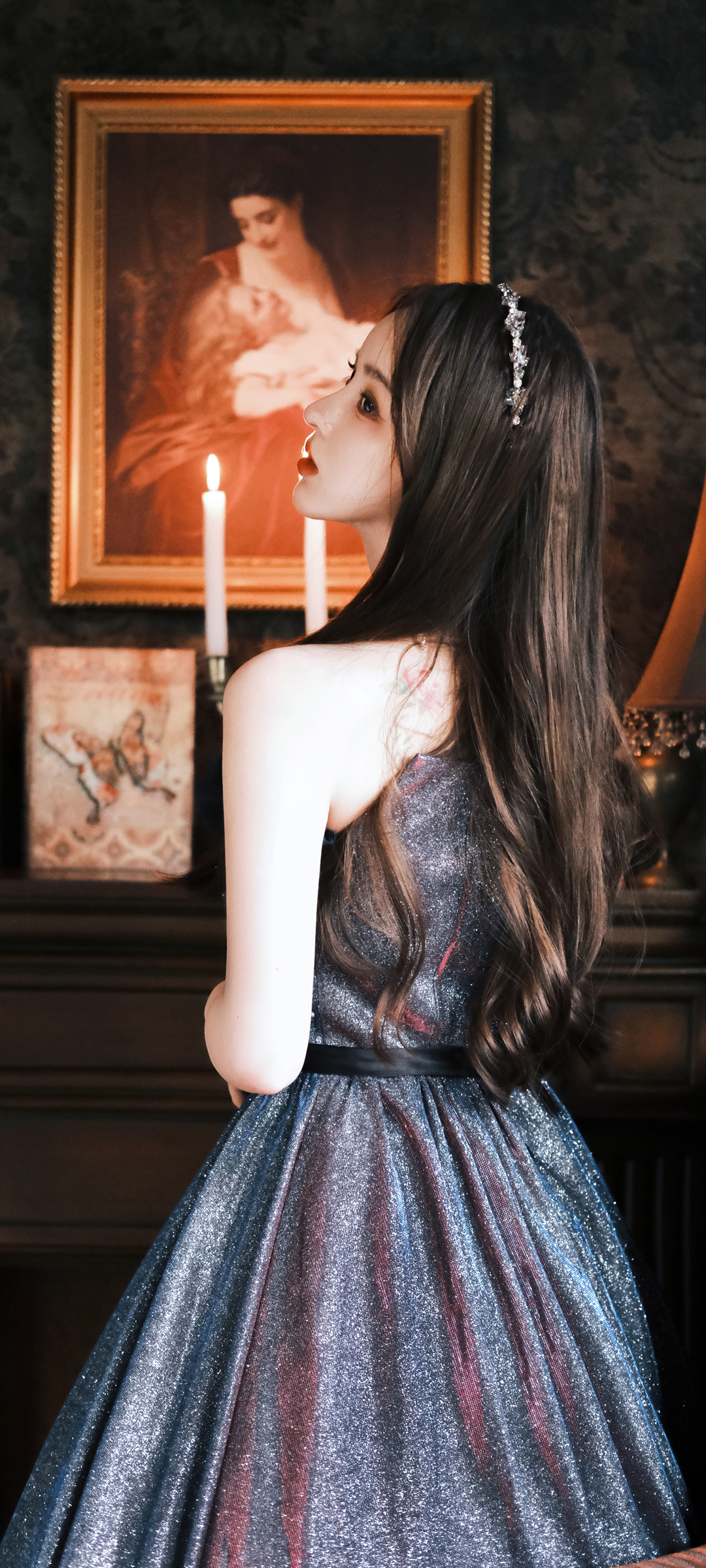 黑色包臀裙长发养眼美女高清免费手机壁纸下载