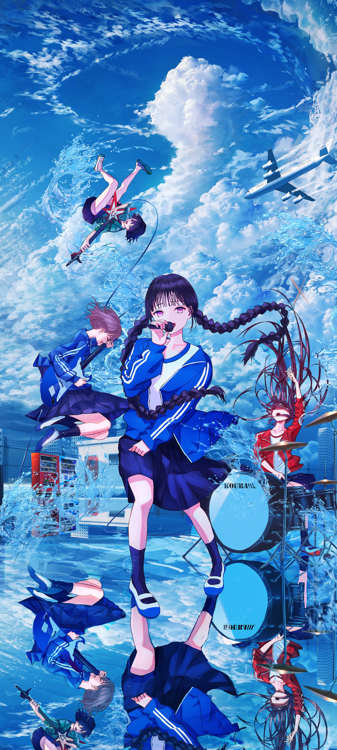 天空云飞机背景下的动漫少女唱歌手机壁纸免费下载