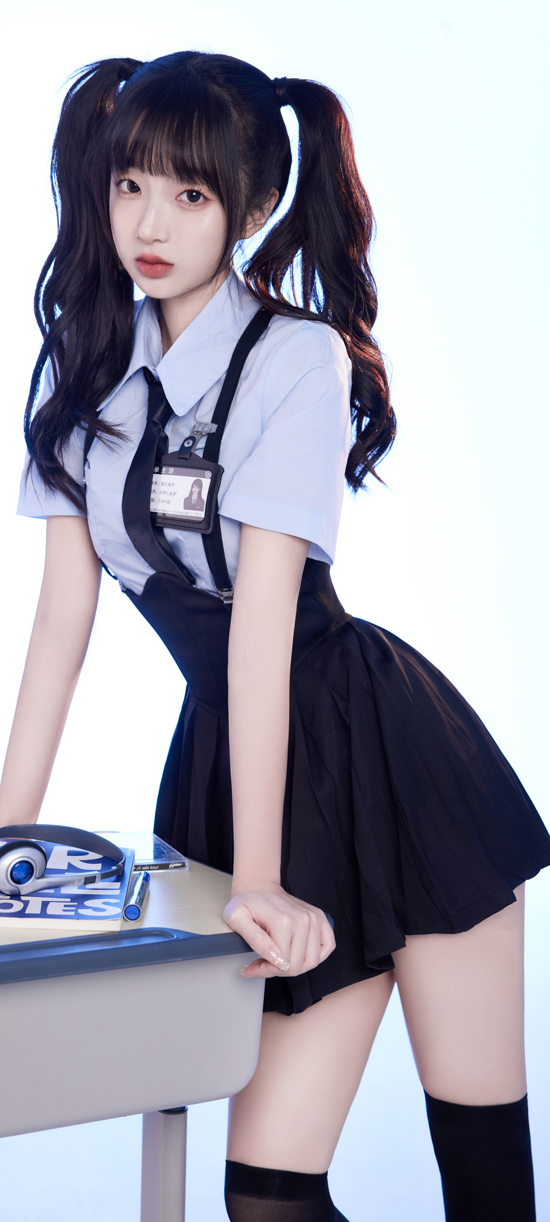双马尾辫美女象韵洁 背带百褶裙美女手机壁纸