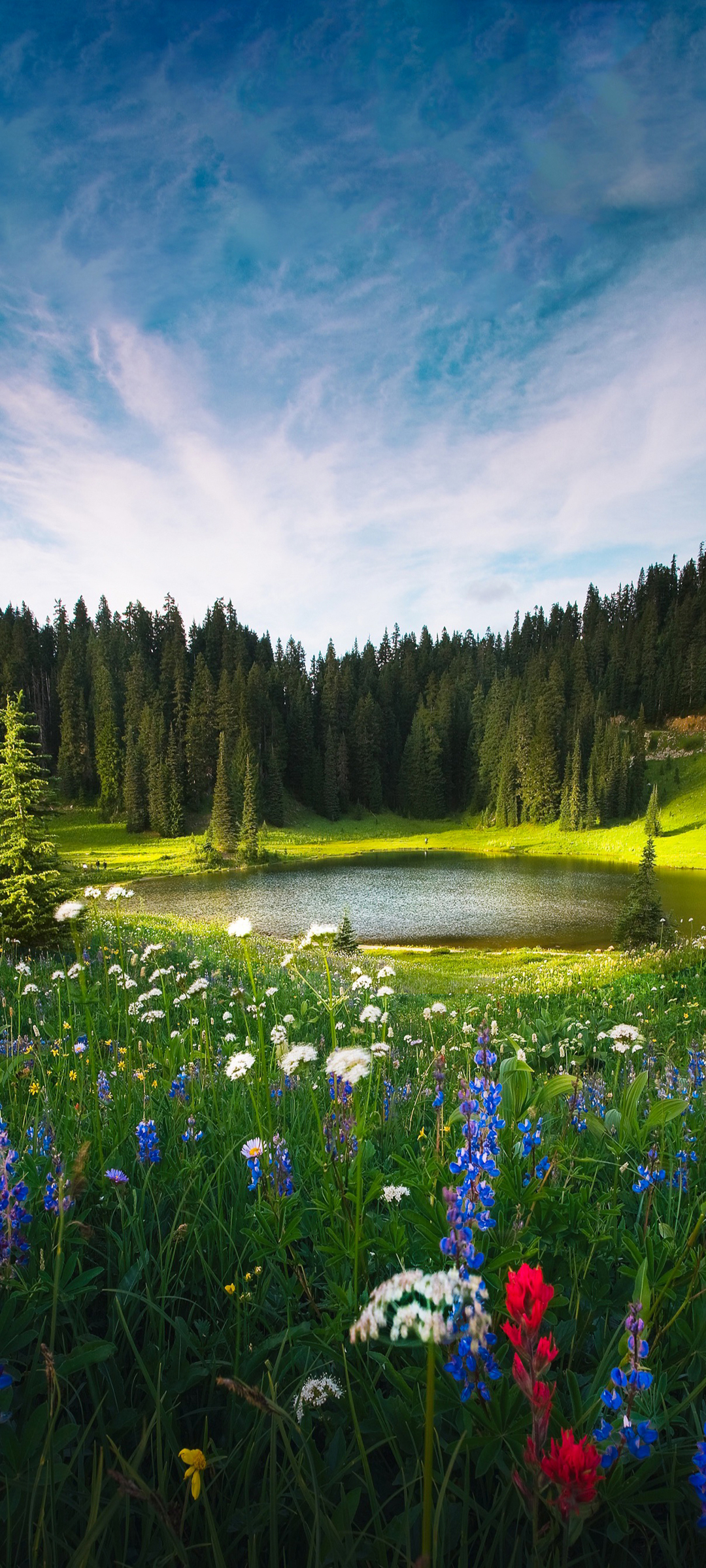 高山湖水树林鲜花风景免费手机壁纸下载