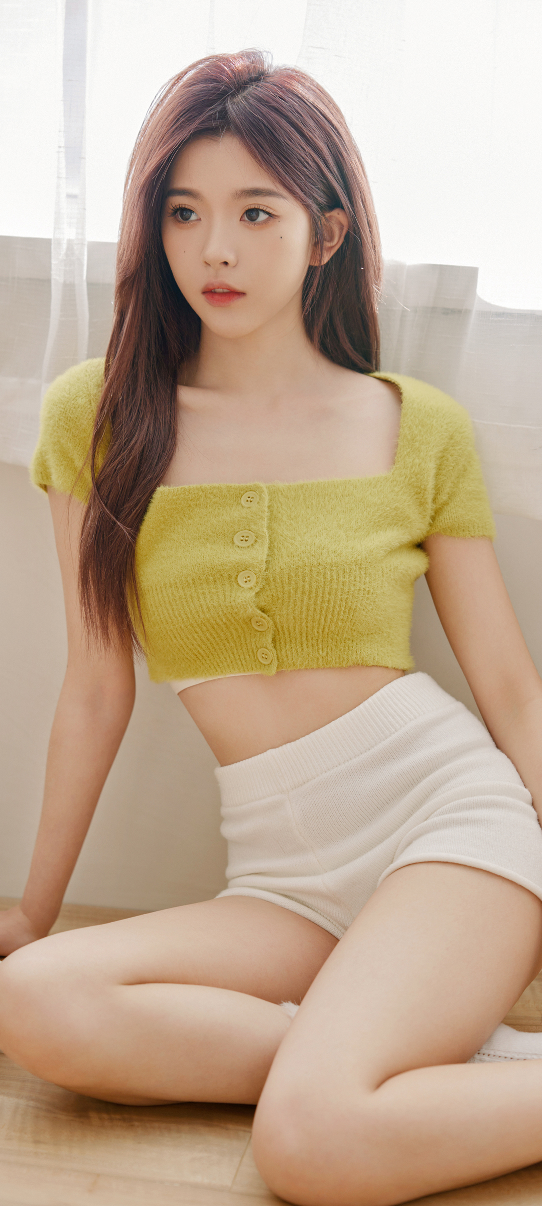 长发美女彭十六elf好看身材全面屏手机壁纸免费下载